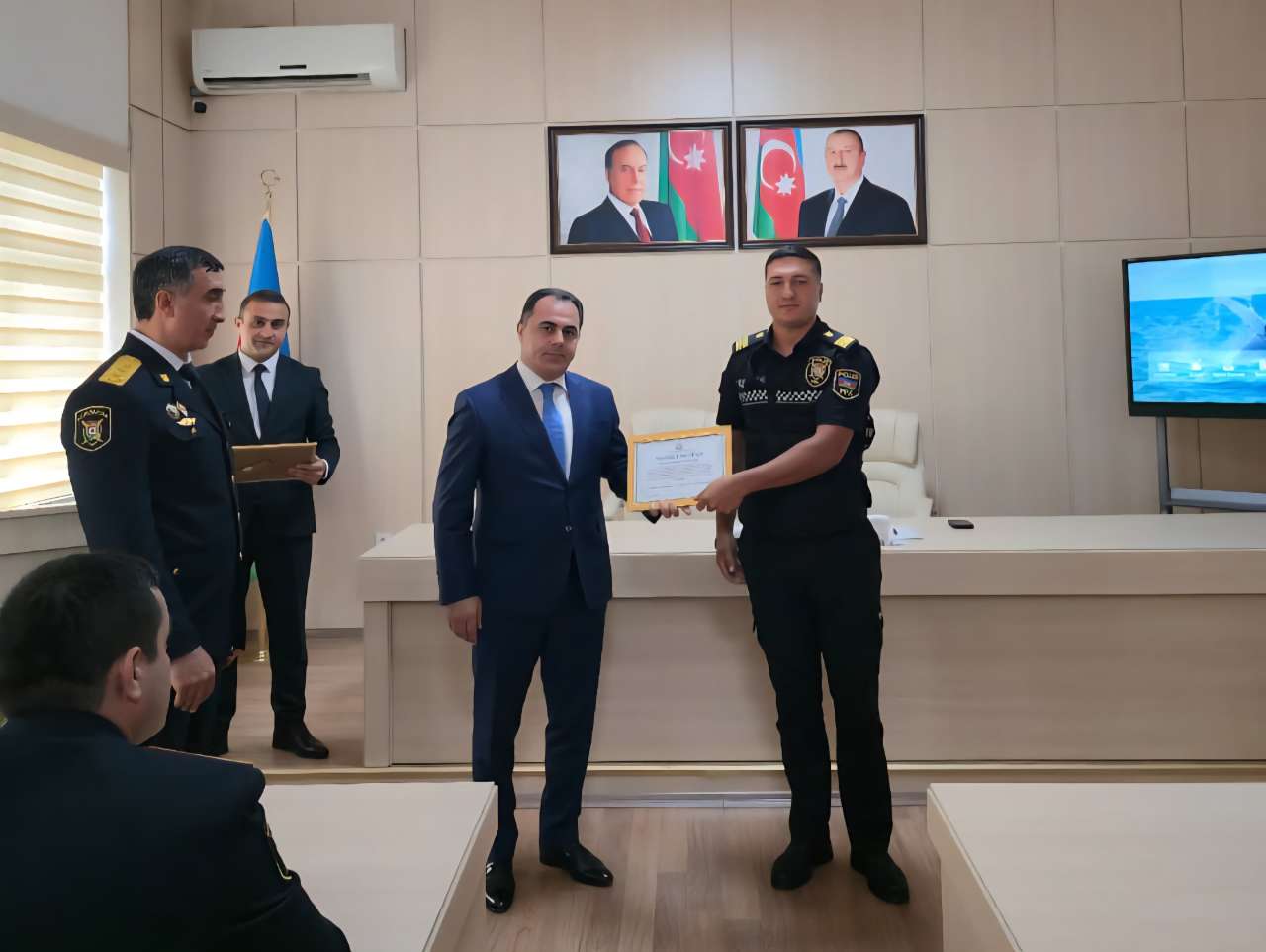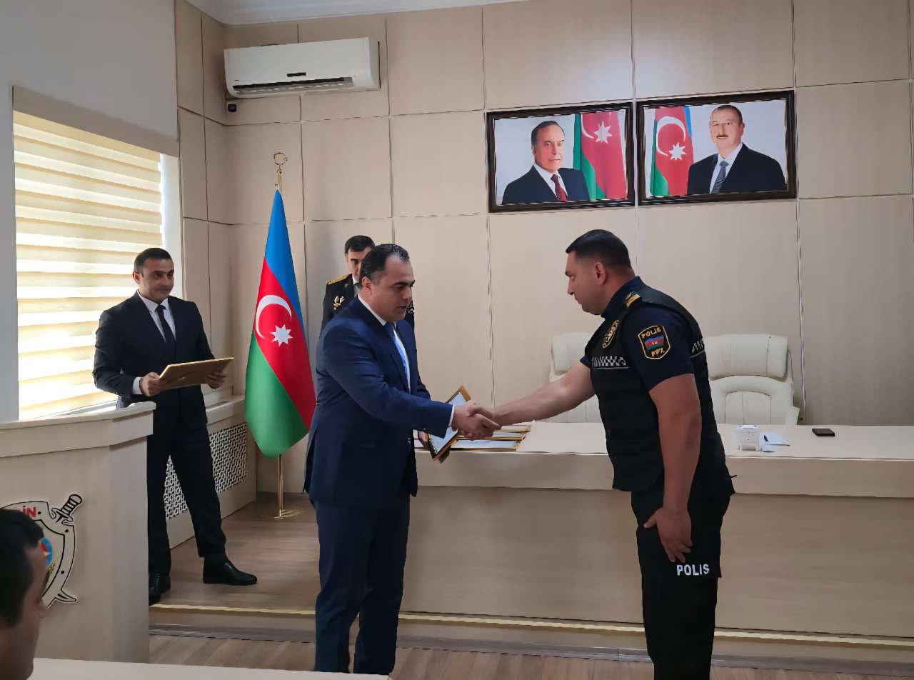 Daha sonra bir qrup polis əməkdaşına Naxçıvan Şəhər İcra Hakimiyyətinin fəxri fərmanları təqdim edilib.