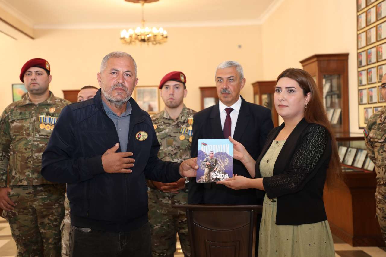 Sonra itkin şəhidimizin atası Səməd Vəlizadə şəhid İbrahim Vəlizadəyə həsr olunan "Murovdan gələn səda" adlı kitabı muzeyə hədiyyə edib.