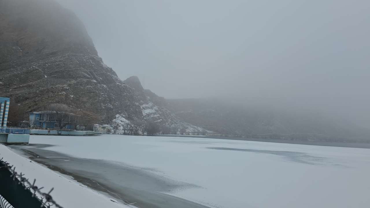 Sərt keçən qış fəsli və temperaturun kəskin aşağı düşməsi nəticəsində Şərur rayonunda yerləşən Arpaçay su anbarının səthi donub.