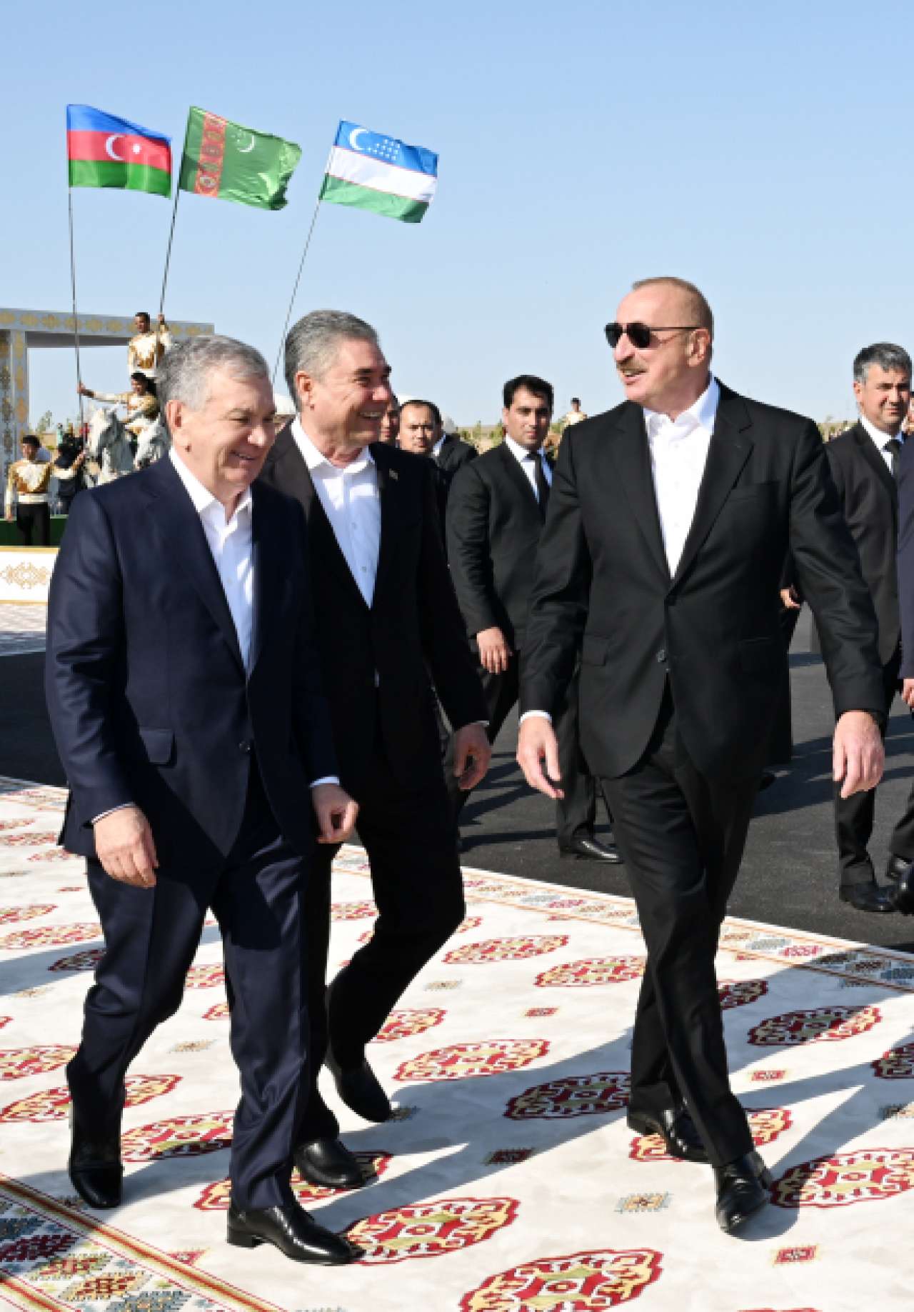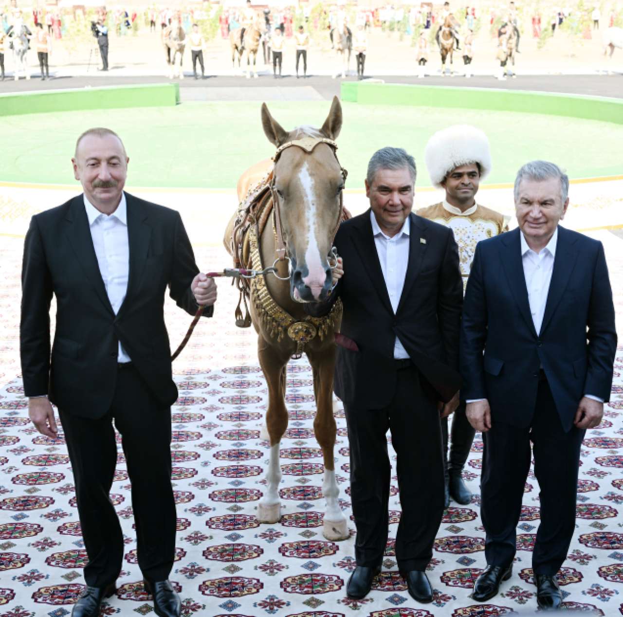 Avqustun 22-də Azərbaycan Respublikasının Prezidenti İlham Əliyev, Türkmənistan Xalq Məsləhətinin sədri Qurbanqulu Berdiməhəmmədov və Özbəkistan Respublikasının Prezidenti Şavkat Mirziyoyev Türkmənbaşı şəhərində “Axaltəkə” atlarına və milli “Galkynysh” atlı qrupunun çıxışına baxıblar.