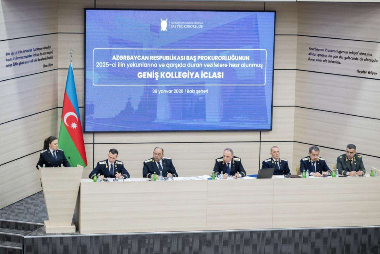 Yanvarın 28-də Baş prokuror Kamran Əliyevin rəhbərliyi ilə Azərbaycan Respublikasının Prokurorluğu orqanları tərəfindən 2025-ci ildə qanunla prokurorluq orqanlarının səlahiyyətinə aid bütün fəaliyyət istiqamətləri üzrə görülmüş işlərin vəziyyəti və qarşıda duran vəzifələrin müzakirəsinə həsr olunmuş geniş kollegiya iclası keçirilib.