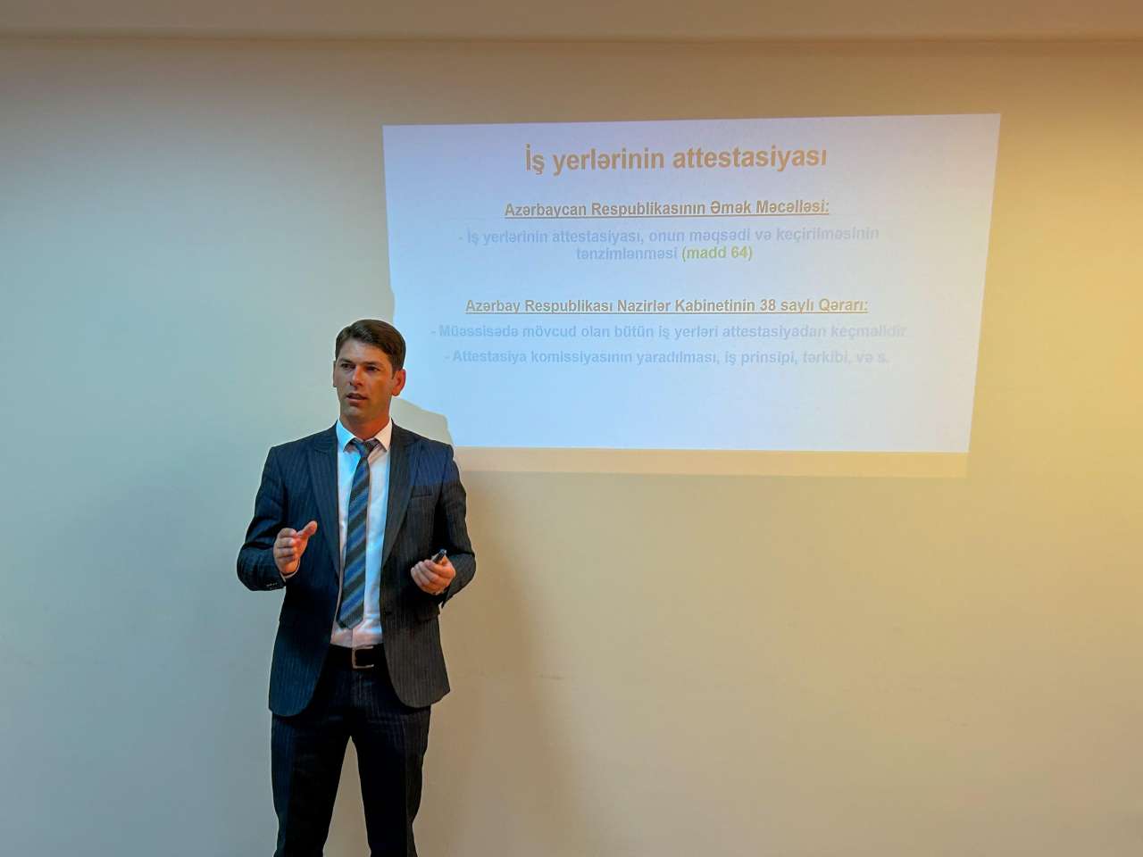 Proqram çərçivəsində iştirakçılara iş yerlərində əməyin mühafizəsinin təşkili, texniki təhlükəsizlik qaydalarının tətbiqi, istehsalat risklərinin azaldılması və attestasiyanın düzgün aparılması ilə bağlı əhəmiyyətli məlumatlar təqdim olunub. Təlim zamanı “Əməyin Mühafizəsi Mərkəzi” PHŞ-nin Naxçıvan filialının müdiri Ruslan Ələkbərov əməyin mühafizəsinin müasir iş mühitində rolundan danışaraq bu istiqamətdə qanunvericiliyin tələblərinə riayət edilməsinin vacibliyini diqqətə çatdırıb. Mərkəzin əməkdaşı Mahmud Rzalı iş yerlərində rast gəlinən risk faktorları və onların aradan qaldırılması yollarına dair praktiki nümunələr təqdim edib. Naxçıvan Muxtar Respublikası Əmək və Əhalinin Sosial Müdafiəsi Nazirliyi yanında Dövlət Əmək Müfəttişliyi Xidmətinin əməkdaşı Güllü Sadiqli isə müəssisələrdə əməyin mühafizəsi qaydalarının tətbiqi mexanizmləri və dövlət nəzarətinin əsas istiqamətləri barədə geniş məlumat verib.