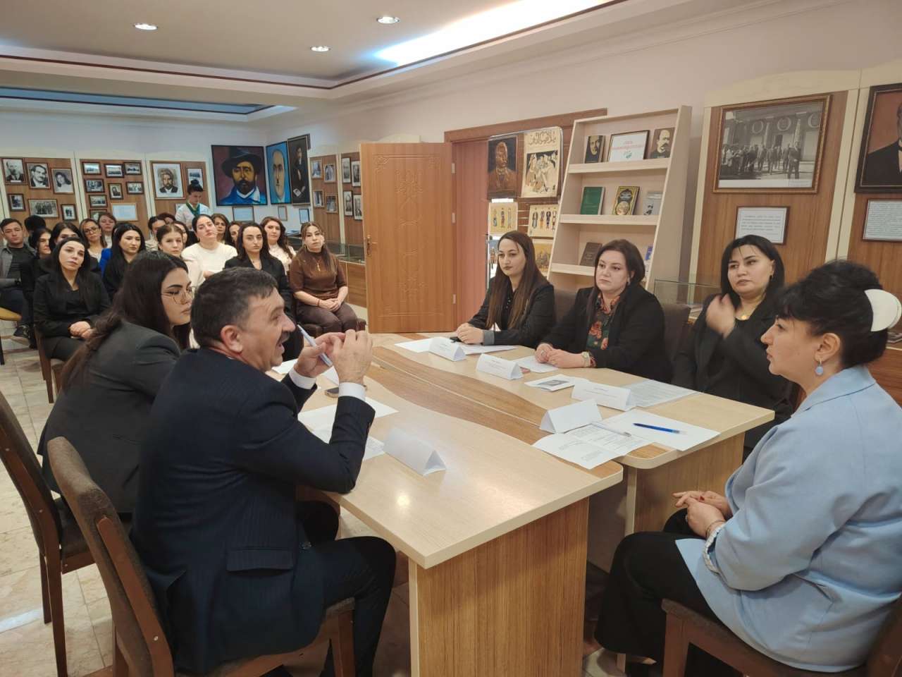 Tədbirin sonunda Cəlil Məmmədquluzadəyə həsr olunmuş sərgiyə baxış keçirilib.