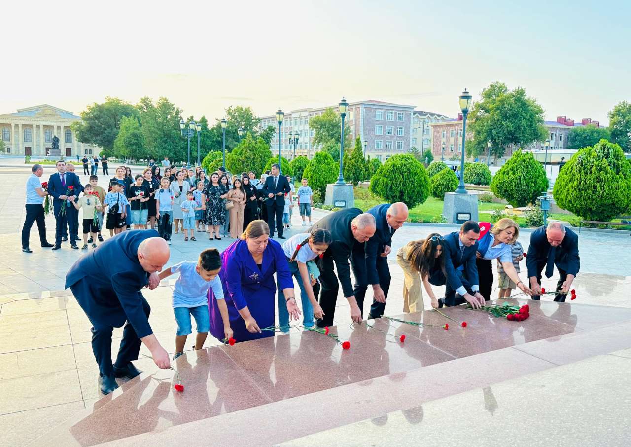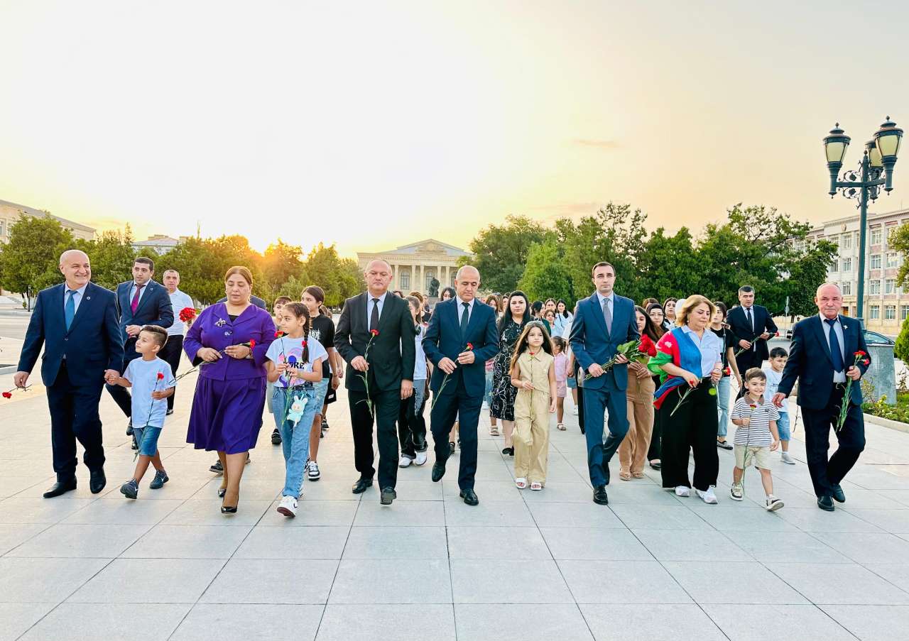 "Şərq qapısı" xəbər verir ki, əvvəlcə Ali Məclisin deputatları, hökumət nümayəndələri, “Cahan Şirkətlər Qrupu” MMC-nin, “Naxçıvan Şəhid Ailələri” İctimai Birliyinin əməkdaşları şəhid övladları ilə birlikdə Ümummilli Lider Heydər Əliyevin Naxçıvan şəhərinin baş meydanında ucalan abidəsini ziyarət edib, abidə önünə gül dəstələri düzüblər.