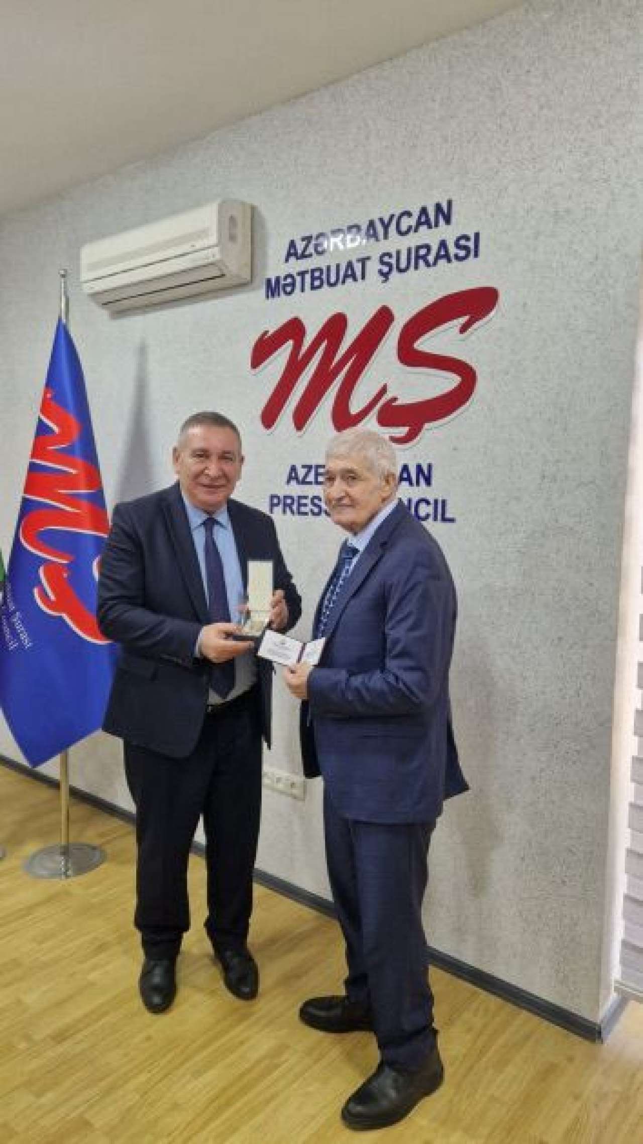 Rəşad Məcid çıxışının sonunda yubiley medalını və Mətbuat Şurasının diplomunu Rəhim Hüseynzadəyə təqdim edib.