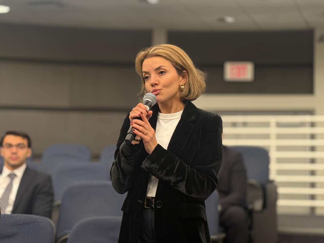 Corc Vaşinqton Universitetində keçirilən görüşdə nazir ölkəmizdə elm və ali təhsil sistemində son illərdə həyata keçirilən islahatlar, ABŞ universitetləri ilə birgə ikili diplom proqramları, elmi müəssisələrin fəaliyyətinin inkişafı və digər aktual məsələlər barədə tələbələrə məlumat verib.