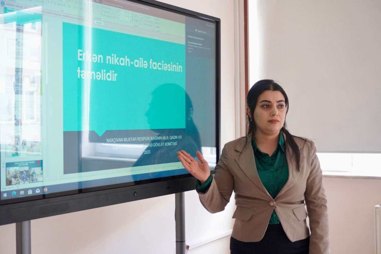 “Şərq qapısı” xəbər verir ki, tədbiri giriş sözü ilə açan Naxçıvan Şəhər İcra Hakimiyyətinin Aparatının əməkdaşı Orxan Məhərrəmov mövzunun aktuallığından və əhəmiyyətindən bəhs edib. Daha sonra Naxçıvan Muxtar Respublikası Ailə, Qadın və Uşaq Problemləri üzrə Dövlət Komitəsi Aparatının Uşaq problemləri şöbəsinin baş məsləhətçisi Müşərrəf Bağırova təqdimatla çıxış edərək nikah yaşından az olan yeniyetmələrin ailə qurmağa təhrik edilməsi qadın və uşaq hüquqlarının kobud şəkildə pozulması deməkdir. Erkən nikah hallarının və qohum evliliklərinin qarşısının alınması istiqamətində ölkə qanunvericiliyində cəzaların sərtləşdirilməsi gələcəkdə bu halların təkrarlanmamasına və sağlam nəslin formalaşmasına hesablanıb. O qeyd edib ki, bu kimi tədbirlər uşaqların maarifləndirilməsi baxımından mühüm əhəmiyyət kəsb edir.