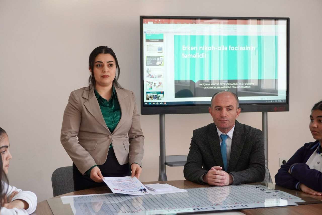 14 aprel 2026-cı il tarixdə Naxçıvan Muxtar Respublikası Ailə, Qadın və Uşaq Problemləri üzrə Dövlət Komitəsi tərəfindən Heydər Əliyev adına tam orta məktəbdə “Erkən nikah uşaq hüquqlarının pozulmasıdır” mövzusunda tədbir keçirilib.