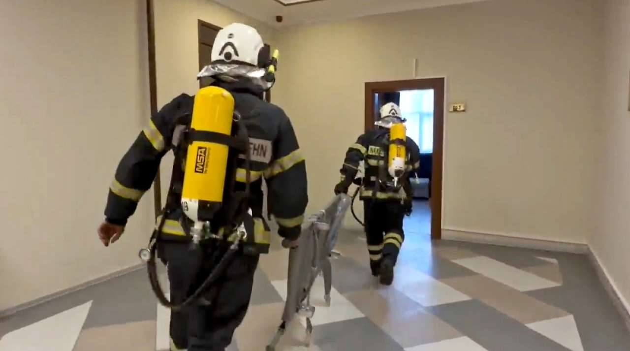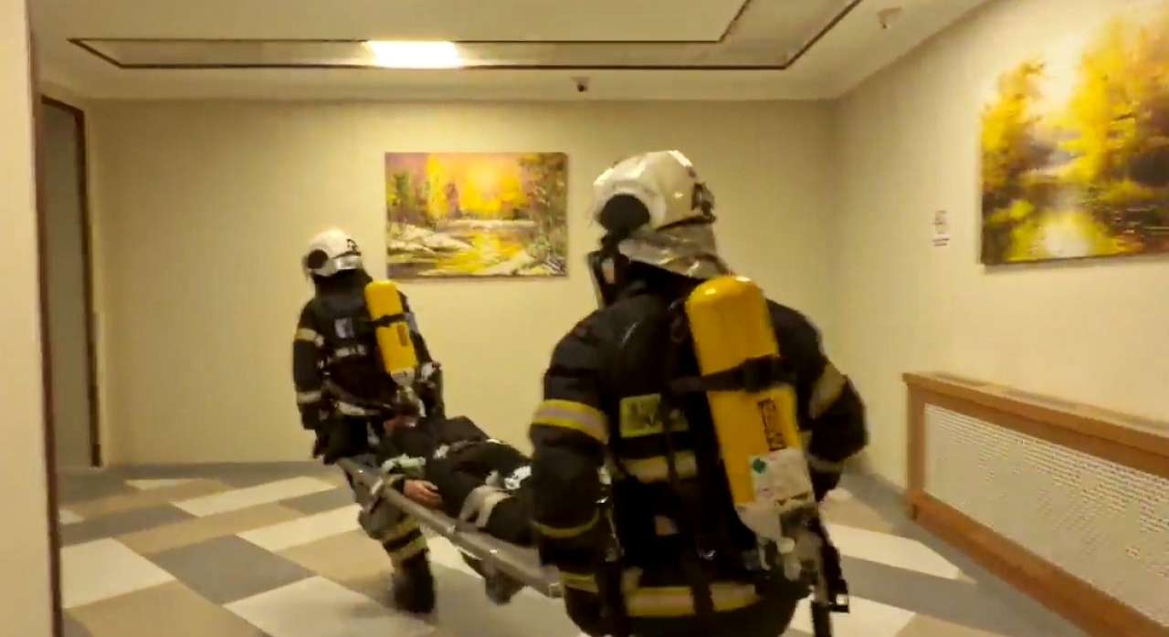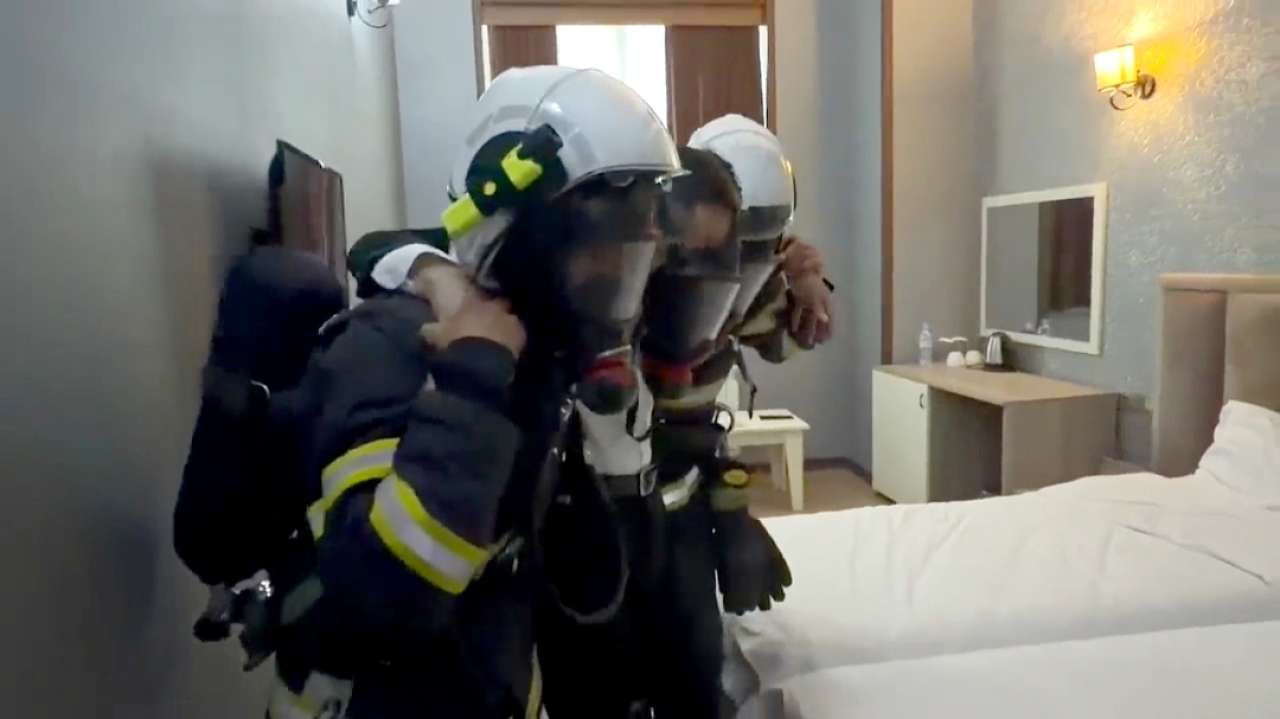Sonra təlimin praktiki hissəsinə start verilib. Belə ki, şərti yanğın zamanı “Həyəcan” siqnalı verildikdən sonra FHN-nin yanğınsöndürənləri operativ qaydada hadisə yerinə çataraq, hotel personalı ilə birgə “yanğınla mübarizə” tədbirlərinə başlayıblar. Şərti yanğın baş verən mehmanxanada təxliyə planına uyğun olaraq xilasedicilər tərəfindən zərərçəkmişlərin təhlükəsiz yerə təxliyəsi həyata keçirilib, şərti xəsarət alan şəxslərə “ilkin yardım göstərilib”.