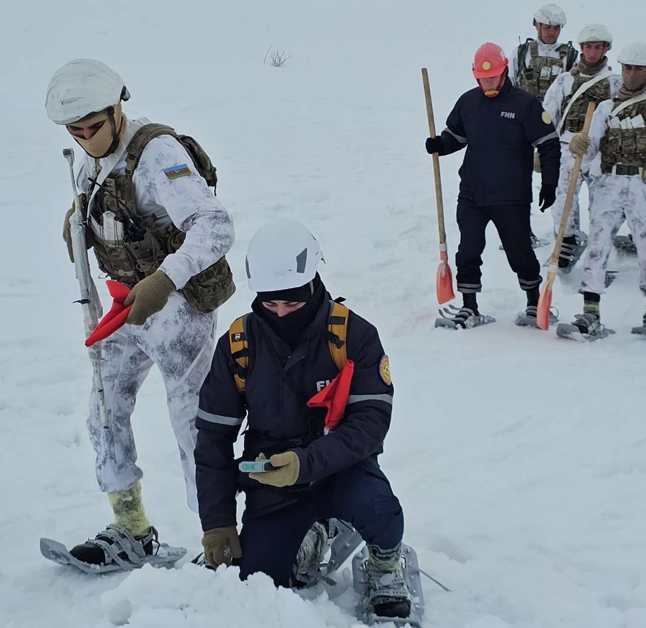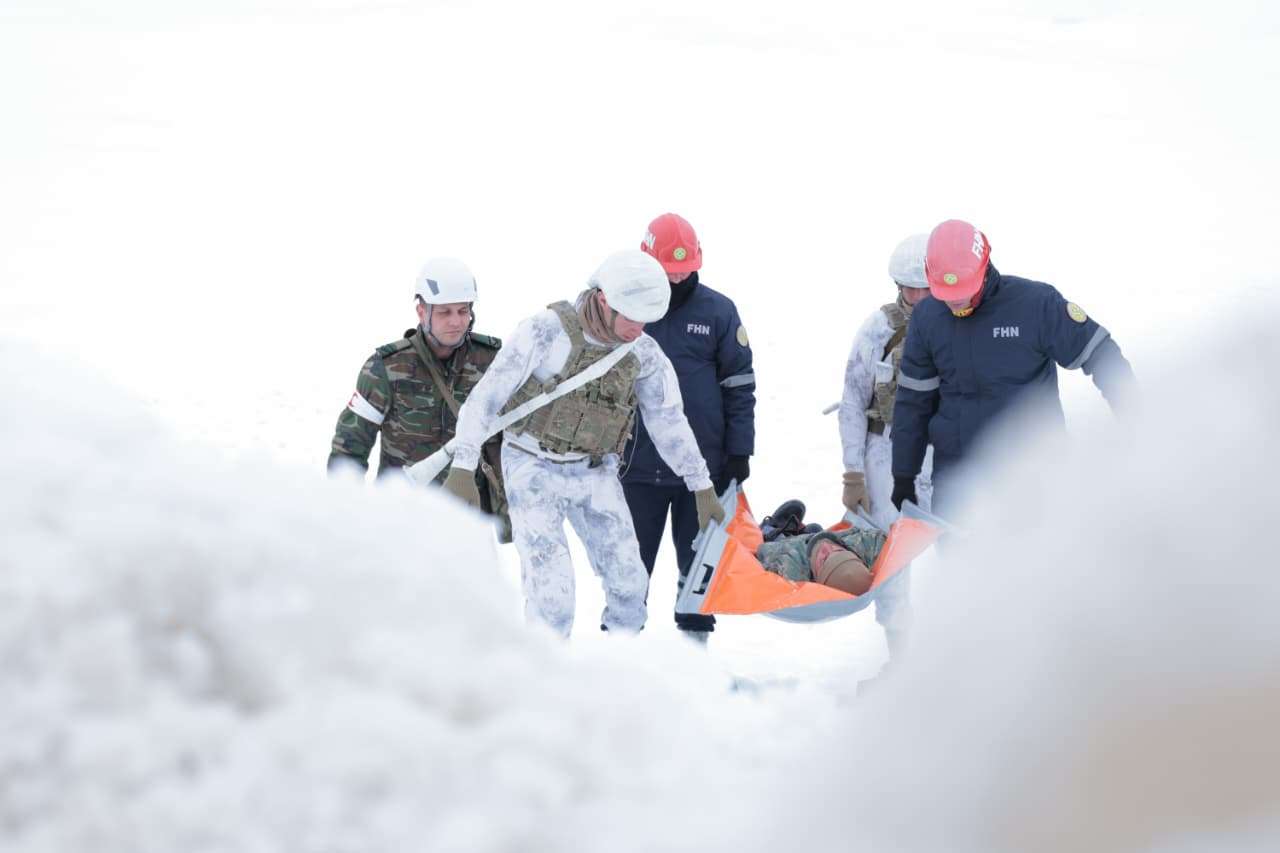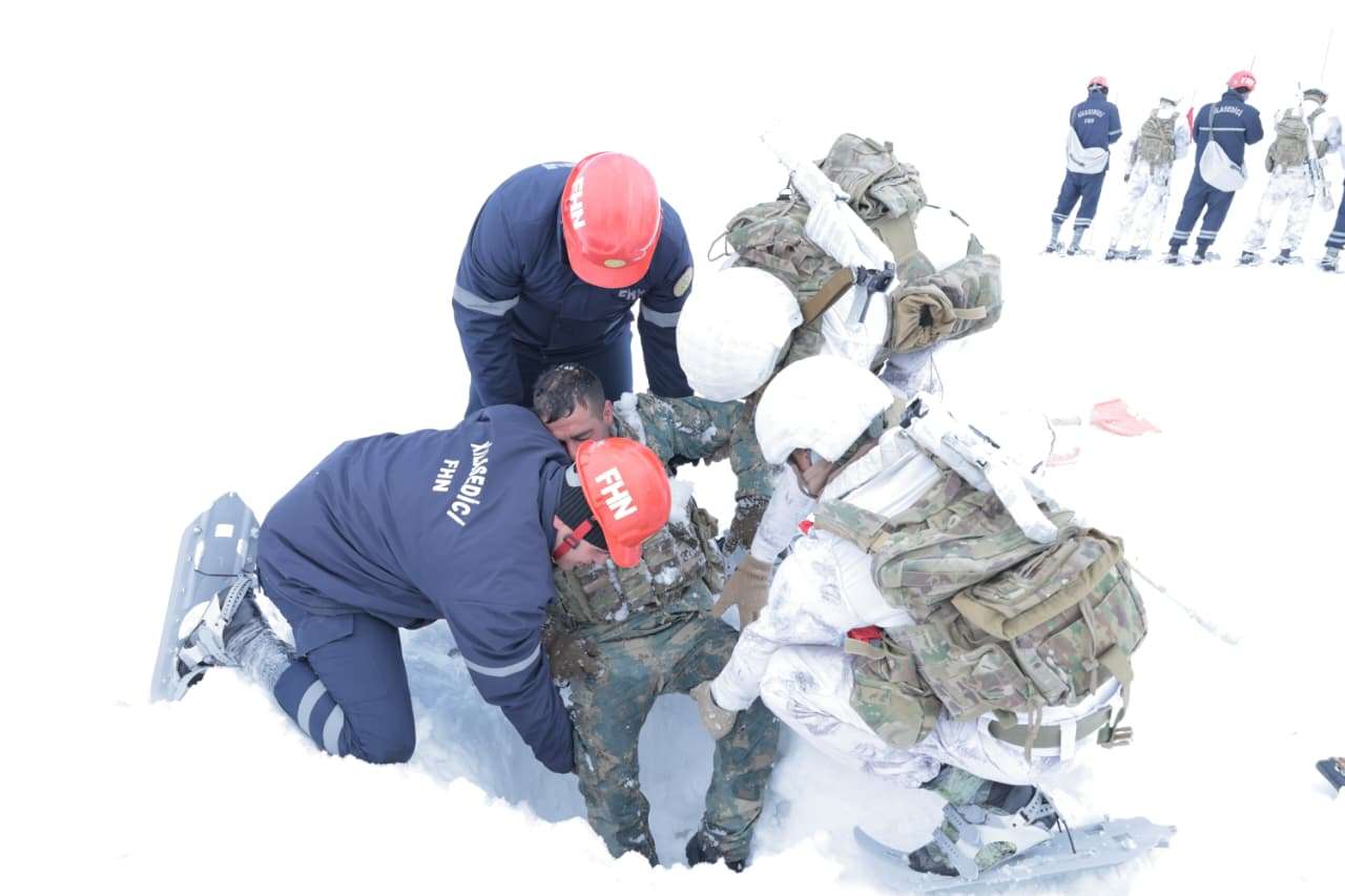 Təlimdə FHN-nin xilasediciləri Əlahiddə Ümumqoşun Ordunun müvafiq bölmələri ilə birgə mürəkkəb relyefli dağlıq ərazidə əlverişsiz hava şəraitində şərti axtarış-xilasetmə işləri aparıb, şərti qar uçqunu altında qalan “zərərçəkmişlərin” xilasetmə avadanlıqlarından istifadə olunmaqla axtarışını aparıb və onların “xilas edilərək ilkin yardımın göstərilməsi” üzrə praktiki tapşırıqları yerinə yetiriblər.
