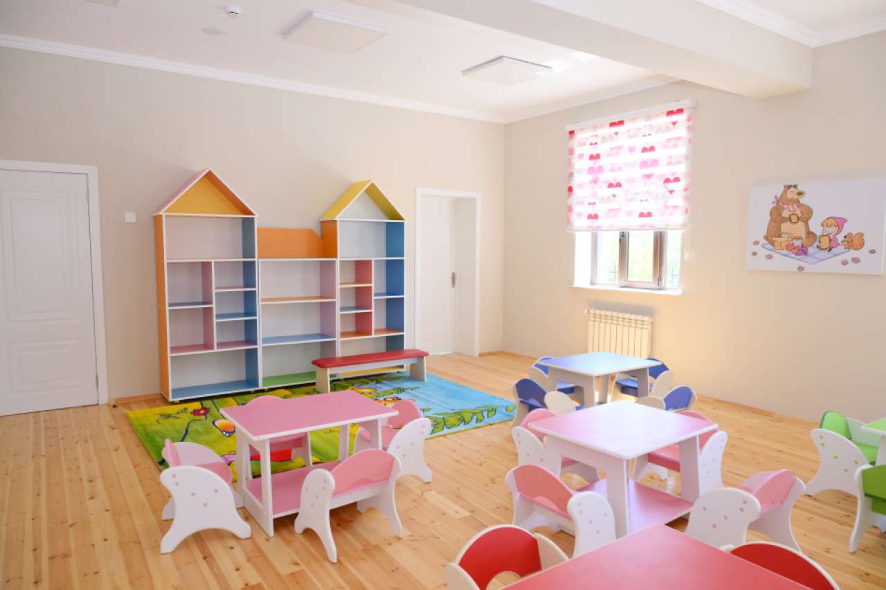 Müasir və tam təchizatlı körpələr evi-uşaq bağçalarında balacalar üçün yataq və oyun otaqları, idman və musiqi zalları, tibb otağı, yeməkxana və digər inzibati, texniki otaqlar mövcuddur. Məktəbəqədər təhsil müəssisələri zəruri mebel və avadanlıqlarla tam təchiz edilib. Bağçaların həyətyanı ərazilərində yaşıllaşdırma işləri aparılıb, uşaq əyləncə qurğuları quraşdırılıb.