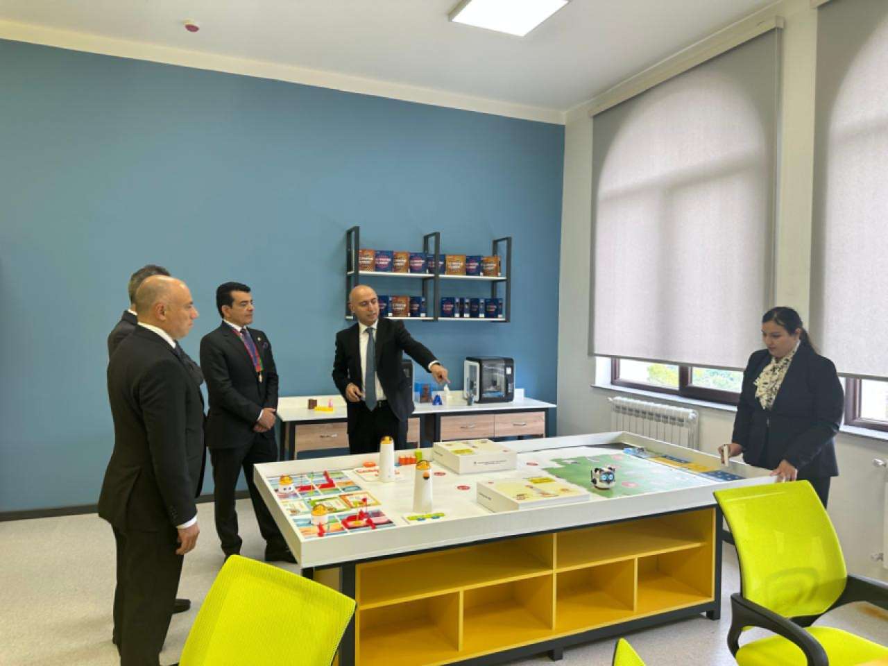 Salim bin Mohammed AlMalik, accompanied by Emin Amrullayev, Minister of Science and Education, first familiarized himself with the educational facilities put in place at the Shusha City Secondary School No. 1 and met with students.