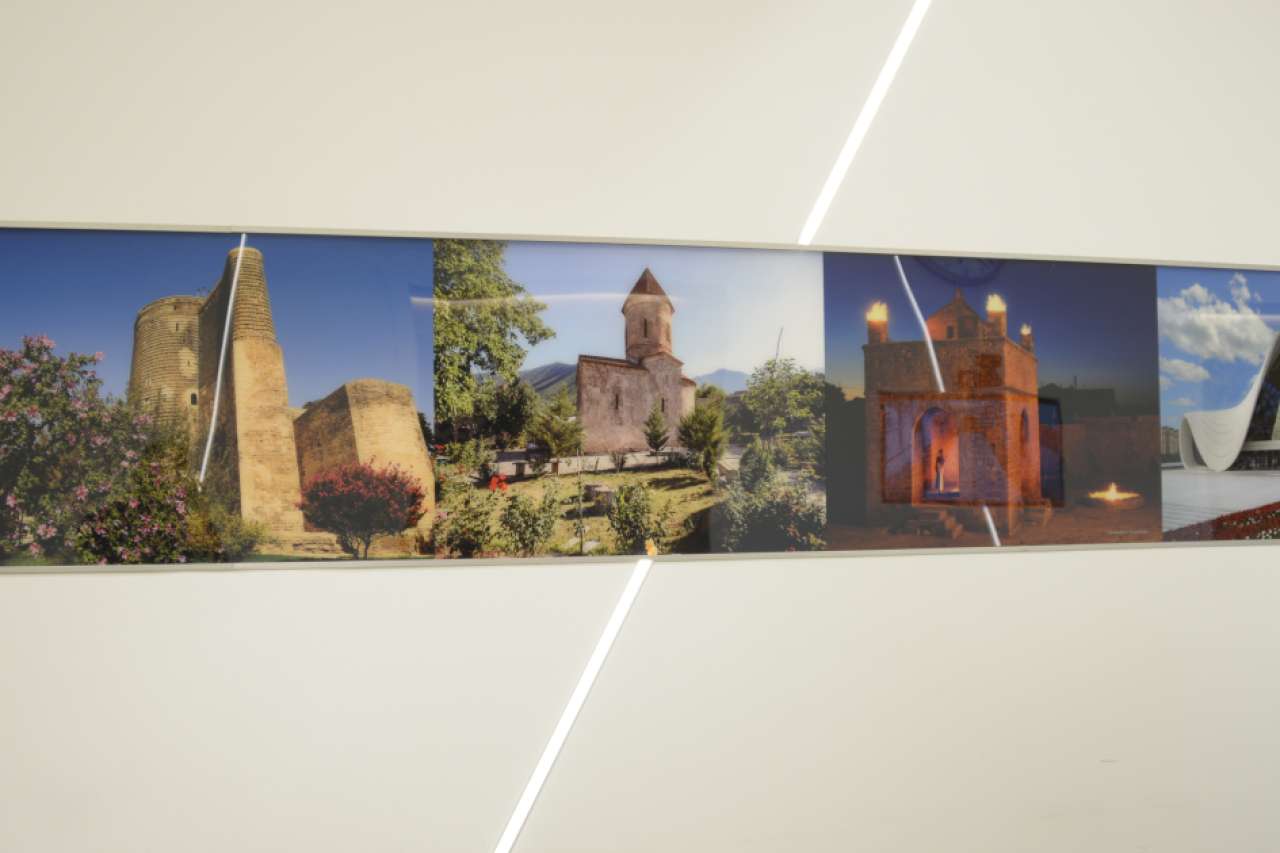 “Azərbaycan otağı”nın tərtibatında milli elementlərə, eləcə də Qarabağ xalçası, şəbəkə eksponatı, muğam üçlüyü - tar, kamança və qavala, Azərbaycan təbiəti və memarlığını əks etdirən fotolara yer verilib.