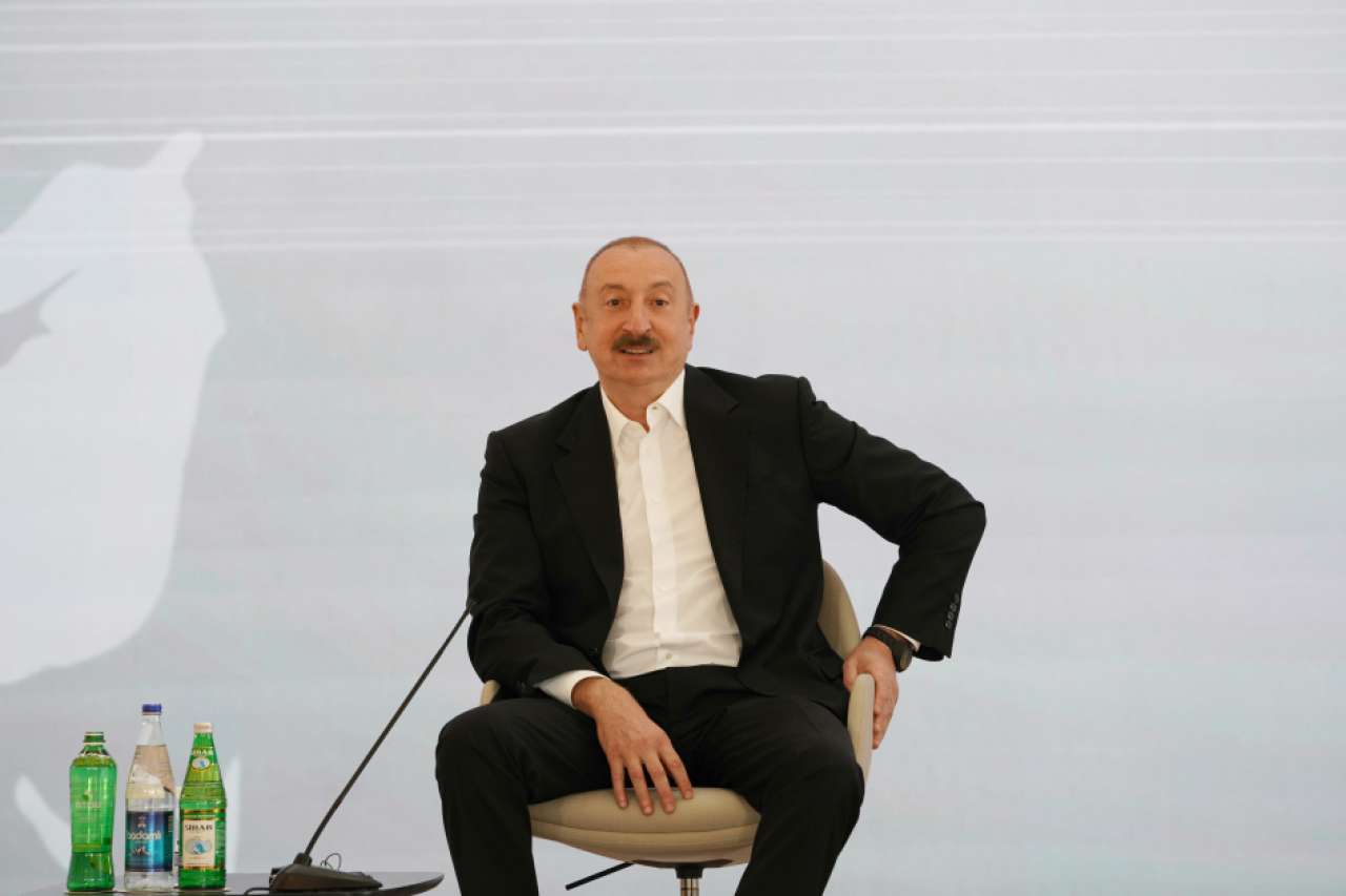 Gela Vasadze: Good afternoon, Mr. President. Thank you very much for another celebration, the third celebration called the Shusha Media Forum. It is a celebration indeed, which leaves a huge aftertaste. A number of questions that I had prepared have already been asked. So I will ask others. I still have questions, quite a few have accumulated over the year. About the meeting in Abu Dhabi. After the meeting in Abu Dhabi, to be honest, I thought about what I kept telling my friend Farhad Mammadov, who is sitting next to me, that when we met, I said, Farhad, we can talk about anything, but let's agree on one thing: the national interests of Azerbaijan and Georgia completely coincide, their strategic interests completely coincide. After the meeting in Abu Dhabi, I thought: how do the national interests of Armenia and Azerbaijan contradict each other so much? How do they contradict each other strategically? To be honest, I did not see these contradictions. Because Armenia's interests are the same as Azerbaijan's – to have a normal neighbor and partner, and to develop this. We have already reached a point when these interests are recognized and when we actually have a picture in which external forces, I don't mean countries, but a specific group of people with interests, simply prevent our countries and people here in the region from living normally. Thank you.