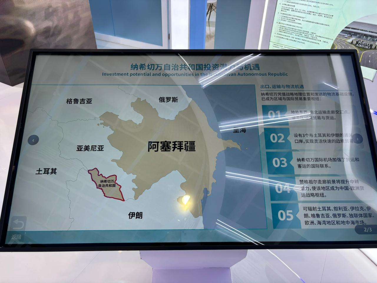 "Şərq qapısı" xəbər verir ki, Naxçıvan Muxtar Respublikası İqtisadiyyat Nazirliyinin təşəbbüsü, Azərbaycan Respublikası İqtisadiyyat Nazirliyinin dəstəyi, Azərbaycanın Çindəki ticarət nümayəndəsi Aparatı və İxracın və İnvestisiyaların Təşviqi Agentliyinin – AZPROMO-nun təşkilatçılığı ilə sərgidə, həmçinin Naxçıvan Muxtar Respublikasının iqtisadi və investisiya potensialı, əlverişli biznes mühiti barədə məlumatlar nümayiş olunur.