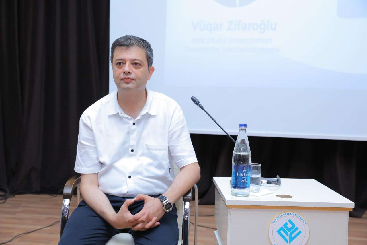 “MEDİAFEST-2025” çərçivəsində mayın 31-də Naxçıvan Dövlət Universitetində Bakı Dövlət Universitetinin professoru Qulu Məhərrəmli və Bakı Dövlət Universitetinin Jurnalistika fakültəsinin dekanı Vüqar Zifəroğlu tələbələrlə görüşüblər.