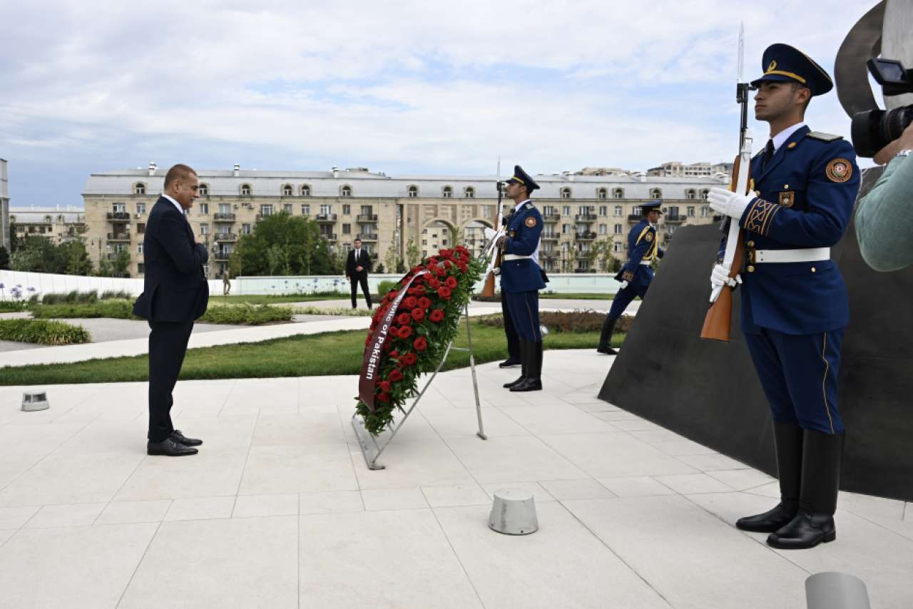 Pakistan Milli Assambleyasının sədri Zəfər abidəsinin önünə əklil qoydu.