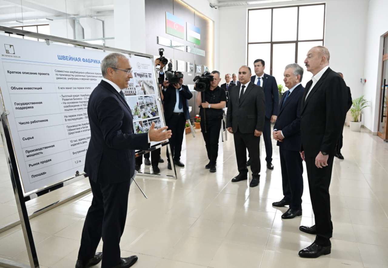 On July 3, Ilham Aliyev, President of the Republic of Azerbaijan, and Shavkat Mirziyoyev, President of the Republic of Uzbekistan, visited the Businesstex JV sewing factory, a joint Azerbaijani-Uzbek enterprise in Khankendi, to review its operations.