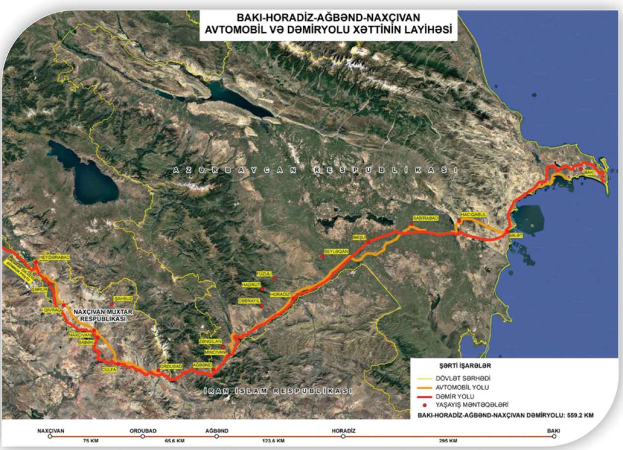 İran İslam Respublikası ilə imzalanmış anlaşma memorandumuna uyğun olaraq Şərqi Zəngəzur iqtisadi rayonunu Naxçıvan Muxtar Respublikası ilə birləşdirən ən qısa və səmərəli nəqliyyat bağlantısı imkanı əldə ediləcəkdir. Bu yol Şərq-Qərb nəqliyyat dəhlizinin əsas komponentlərindən biri olacaqdır.