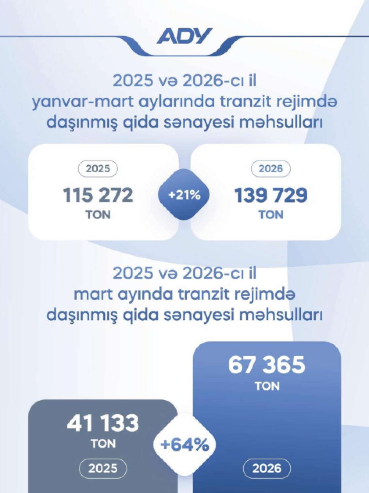 "Şərq qapısı" xəbər verir ki, analoji məhsulların 2026-cı ilin birinci rübü üzrə daşınması 325 min tona yaxın təşkil edib və ötən ilin eyni dövrünü 9 faiz üstələyib.