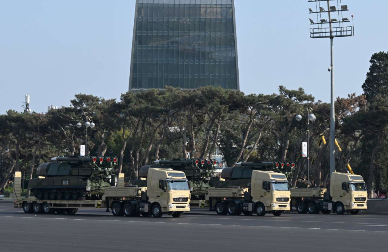 Daha sonra Azadlıq meydanında Hava Hücumundan Müdafiə silahları sistemləri kolonunun keçidi oldu. Kolona “Vətən uğrunda” medalı ilə təltif olunmuş general-mayor Zaur Yusifli başçılıq edirdi. Tribuna önündən “S-125 TM”, “BUK-MB”, “BUK-MB2K”, “İLDIRIM-8”, “S-300 FAVORİT” və “TOR-2M” zenit-raket komplekslərinin keçidi oldu. Ardınca silahlanmaya yeni qəbul edilmiş Yerli Müdafiə Sənayesinin məhsulu “VİKİNQ” hava hədəflərinə qarşı çoxfunksiyalı mobil döyüş kompleksi, təkmilləşdirilmiş “Şilka” özüyeriyən zenit qurğusu və “HQ-9” uzaqmənzilli zenit-raket kompleksi nümayiş olundu.