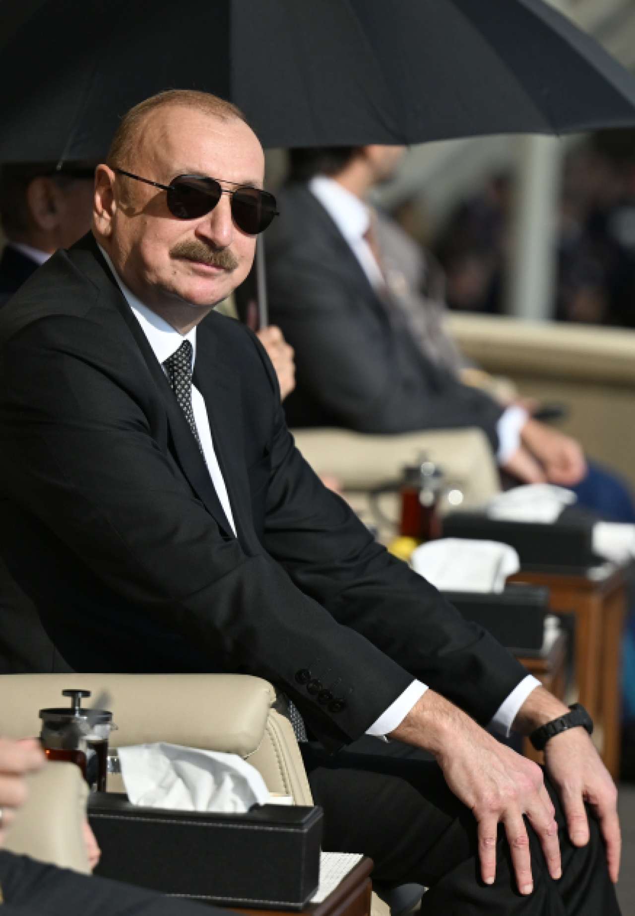 "Şərq qapısı" xəbər verir ki, Azərbaycan Respublikasının Prezidenti İlham Əliyev, birinci xanım Mehriban Əliyeva, Türkiyə Respublikasının Prezidenti Rəcəb Tayyib Ərdoğan, Pakistan İslam Respublikasının Baş naziri Məhəmməd Şahbaz Şərif paradda iştirak ediblər.