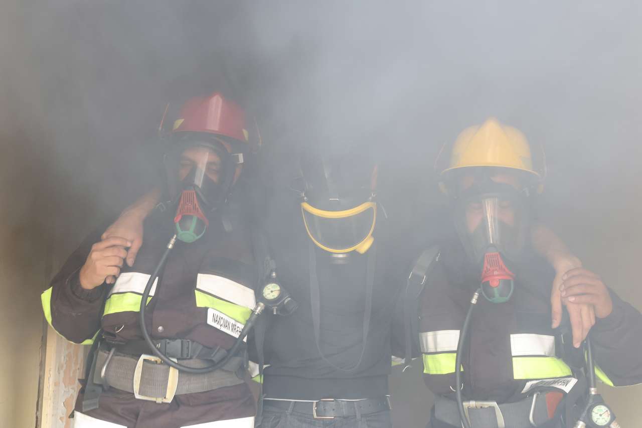 Yanğınsöndürən avtomobillərinin su püskürtməsi ilə havada buxar buludları əmələ gəlirdi. Tüstü, buxar, alov, hamısı bir-birinə qarışmışdı. Hava ağır idi, nəfəs almaq çətinləşirdi. Fotomüxbirimiz Zülfüqar Qurbanlı bütün bu anları kadra alırdı. O, kameranı əlindən salmadan, bir yanğından digərinə qaçırdı. Bəzən tüstü onu ötürdü, amma o, geri çəkilmirdi. Çünki bu sadəcə, təlim deyil, həyatın özü idi. Bir anlıq alovun içindən “xəsarət alan” çıxarıldı. Hər kəs dərin bir nəfəs aldı. Hər şey sanki bir neçə dəqiqə çəkdi, amma o, bir neçə dəqiqə, əslində, bir ömürlük hiss idi. İnsan anlayır ki, yanğınsöndürən olmaq təkcə alovla mübarizə aparmaq deyil, həm də qorxunu udmaq, başqalarının həyatını özündən önə çəkməkdir.