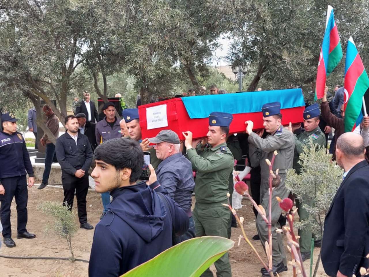 Vida mərasimindən sonra itkin şəhid hərbi orkestrin ifası və yaylım atəşinin müşayiəti ilə torpağa tapşırılıb.