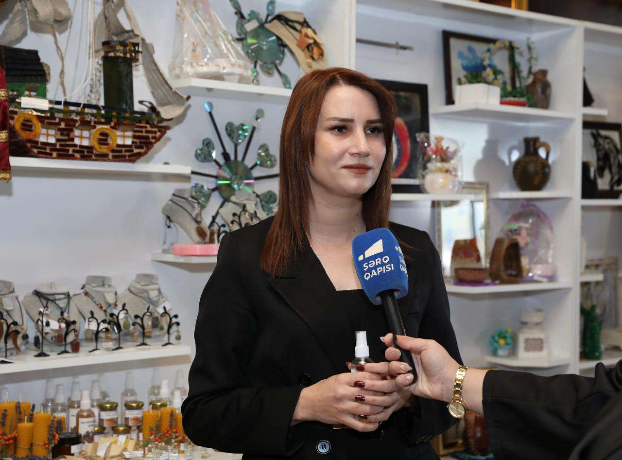 Əzizə Məmmədova sərgidə 50-yə yaxın əl işini nümayiş etdirdiyini bildirdi. Onun təqdim etdiyi sənət nümunələri arasında milli-mənəvi və ailə dəyərlərini özündə əks etdirən, muxtar respublikanın yeraltı və yerüstü sərvətlərindən, eləcə də yerli və təbii daşlardan hazırlanmış bəzək əşyaları da yer alır. Əzizə xanım qeyd etdi ki, bu dəyərləri qorumaq və onları yaradıcılığında yaşatmaq onun üçün xüsusi önəm daşıyır.