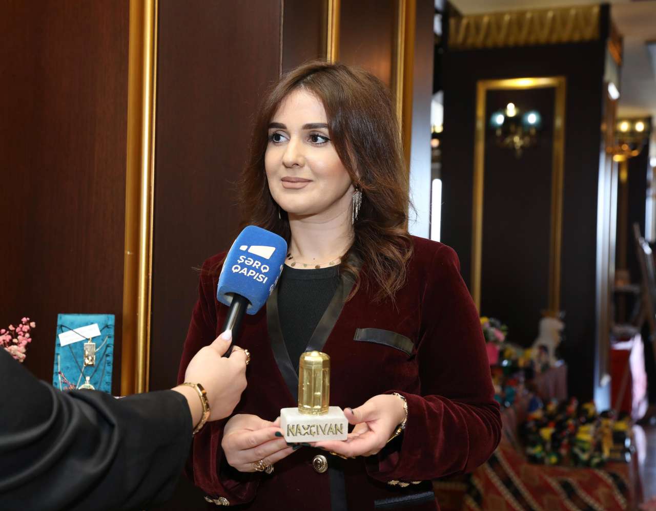 Zərif toxunuşlarla hazırlanmış əl işlərini təqdim edən xanımlar, eyni zamanda onların hazırlanma prosesini də qonaqlara nümayiş etdirirdilər. Həmin sənətkarlar arasında Naxçıvan Dövlət Universitetinin müəllimi, istedadlı qadın Əzizə Məmmədova da var. Onunla söhbət zamanı bildirdi ki, ölkəmizdə qadınlara hər zaman yüksək dəyər verilir. Əlavə edir: “Biz mütəmadi olaraq Naxçıvan Muxtar Respublikası Ailə, Qadın və Uşaq Problemləri üzrə Dövlət Komitəsinin təşkilatçılığı ilə keçirilən məhdud fiziki imkanlı və istedadlı qadınların rəsm və əl işlərindən ibarət sərgi-satış yarmarkalarında iştirak edirik. Bu sərgilər bizim yaradıcılığımızın inkişafına həm də maddi baxımdan böyük dəstək olur. Mən dekorativ-tətbiqi sənət növü ilə məşğulam. Hazırda Naxçıvanın daş duzundan oyma işləri görürəm və qadın aksesuarlarının hazırlanmasına da xüsusi diqqət yetirirəm. Hətta duzdan hazırladığım qadın zinət məhsullarını Avrasiya ölkələrində tanıtmaq üçün sənədlər toplayıram”.