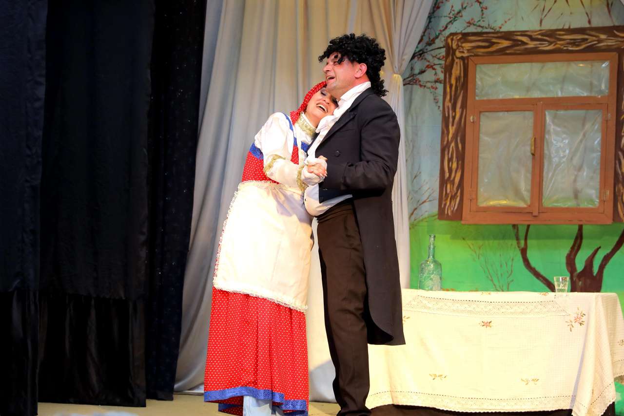 Tamaşada rolları Azərbaycan Respublikasının Əməkdar artisti Bəhruz Haqverdiyev (Stepan Stepanoviç), Əfqanə Ələsgərova (Natalya Stepanovna) və İlqar Babayev (İvan Vasiliyeviç) canlandırıblar.