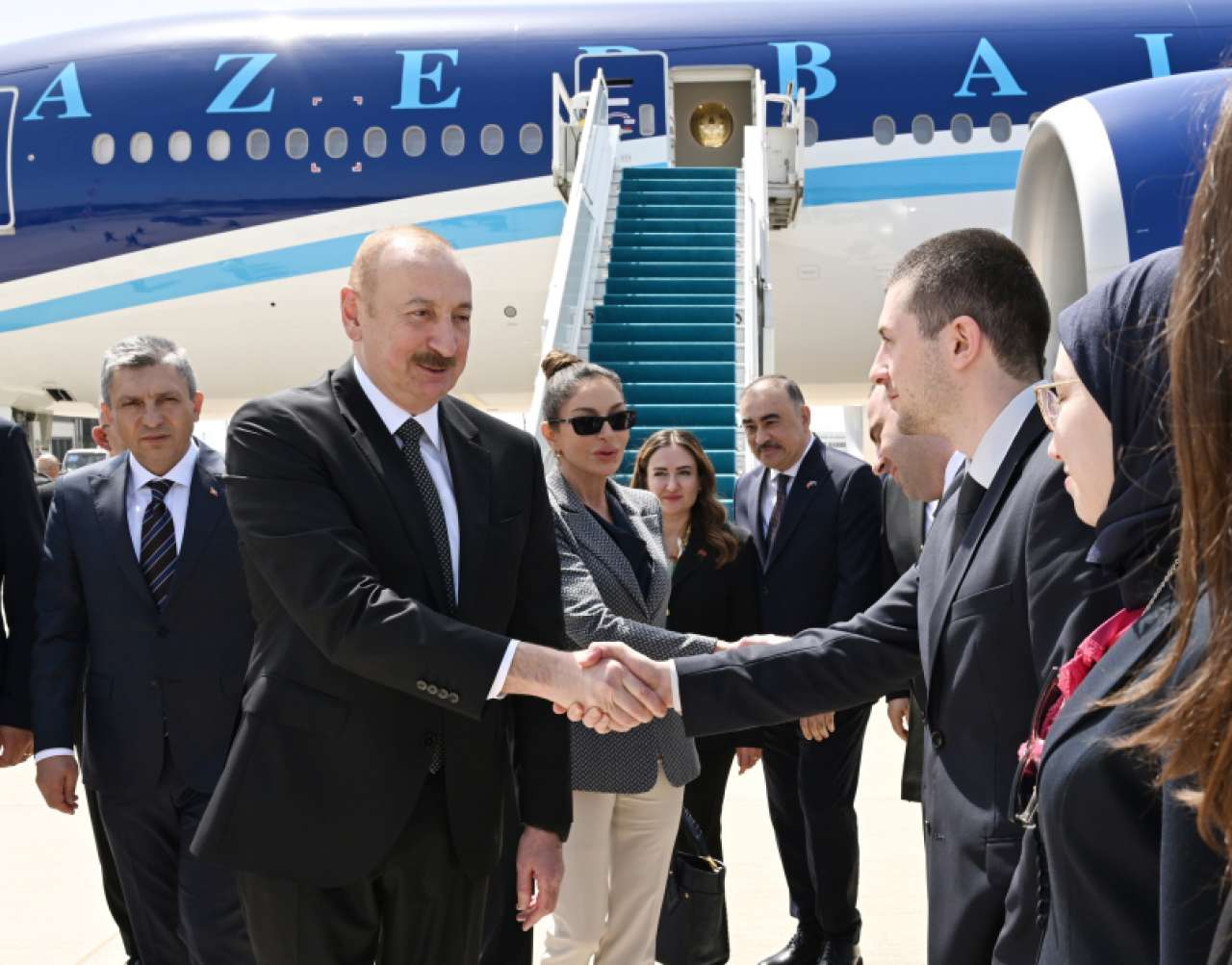 Как сообщает «Шарк капысы», в международном аэропорту Антальи Президента Ильхама Алиева и первую леди Мехрибан Алиеву встречали губернатор города Анталья Хулуси Шахин и другие официальные лица.