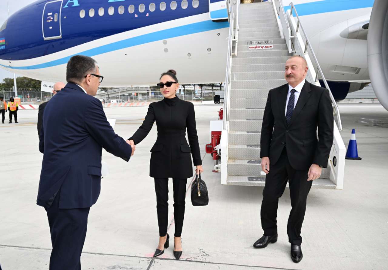 "Şərq qapısı" xəbər verir ki, Prezident İlham Əliyevi və birinci xanım Mehriban Əliyevanı Nyu-York şəhərinin “John F.Kennedy” Beynəlxalq Hava Limanında rəsmi şəxslər qarşılayıblar.