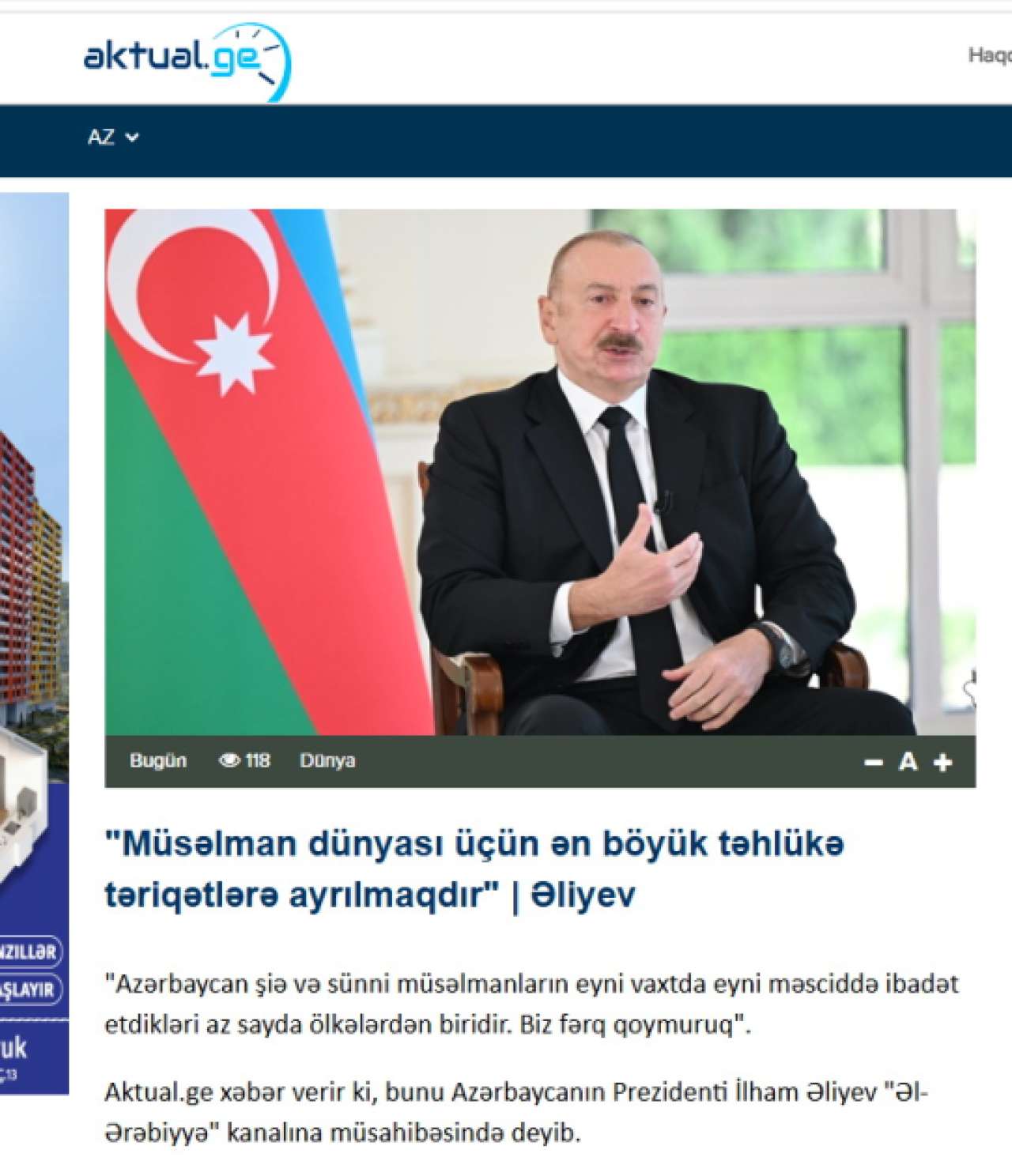 Azərbaycan Prezidenti İlham Əliyevin Səudiyyə Ərəbistanının “Əl-Ərəbiyyə” telekanalına müsahibəsi Gürcüstan mətbuatının diqqət mərkəzində olub.