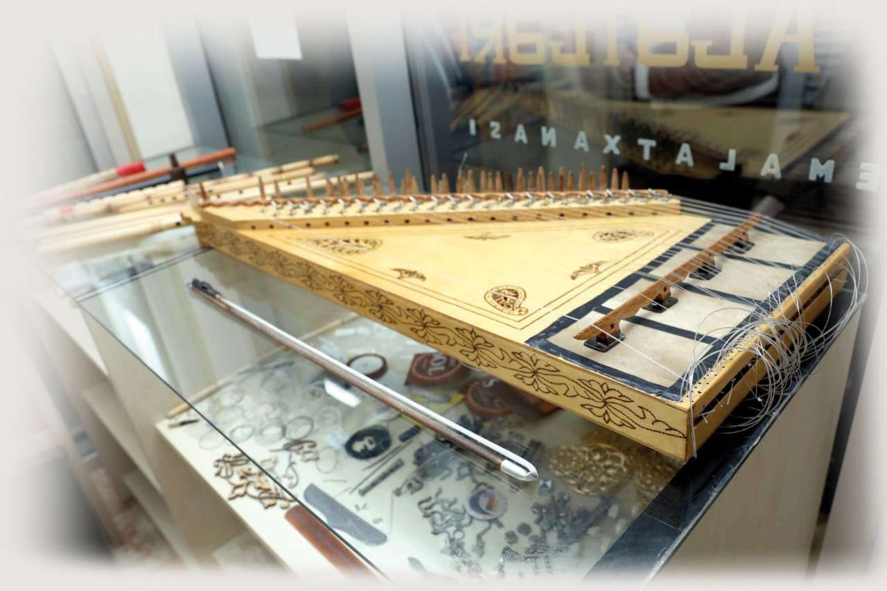 Emalatxanaya göz gəzdirdiyimiz zaman diqqətimizi çəkən alətlərdən biri də səntur oldu. Onun tarixi haqqında soruşduqda, İxtiyar müəllim belə izah edir: “Səntur yatıq sazlar ailəsinə mənsub olan bir alətdir. Qanun, nüzhə və bu tipli digər alətlərlə eyni kökdən gəlir”. Usta əlavə edir ki, əfsanələrə görə Davud peyğəmbər bir sıra musiqi alətlərinin, o cümlədən sənturun yaradıcısı hesab olunur. Bu inanışın izləri həm dini mənbələrdə, həm də Şərq mədəniyyətində öz əksini tapır. İxtiyar Seyidovun emalatxanasında sənturun bərpa edilmiş nümunəsini görmək isə təsadüfi deyil o bu aləti təkcə bərpa etmir, həm də qədim musiqi ənənəsinin bugünkü davamı kimi yaşadır. Bu alət haqqında danışarkən usta ayağa qalxaraq sənturu ifa etməyə başladı. O an bir daha gördük ki, İxtiyar Seyidov yalnız ustad sənətkar deyil, həm də yüksək zövqlə ifa edən dəyərli bir musiqiçidir. Sakitcə dayanıb onun ifasına qulaq asdıqda insanın içində bu sənətə qarşı xüsusi bir maraq oyanır. Musiqinin səsi ruhu oxşayır, adama bir rahatlıq bəxş edir, sanki zaman dayanır.