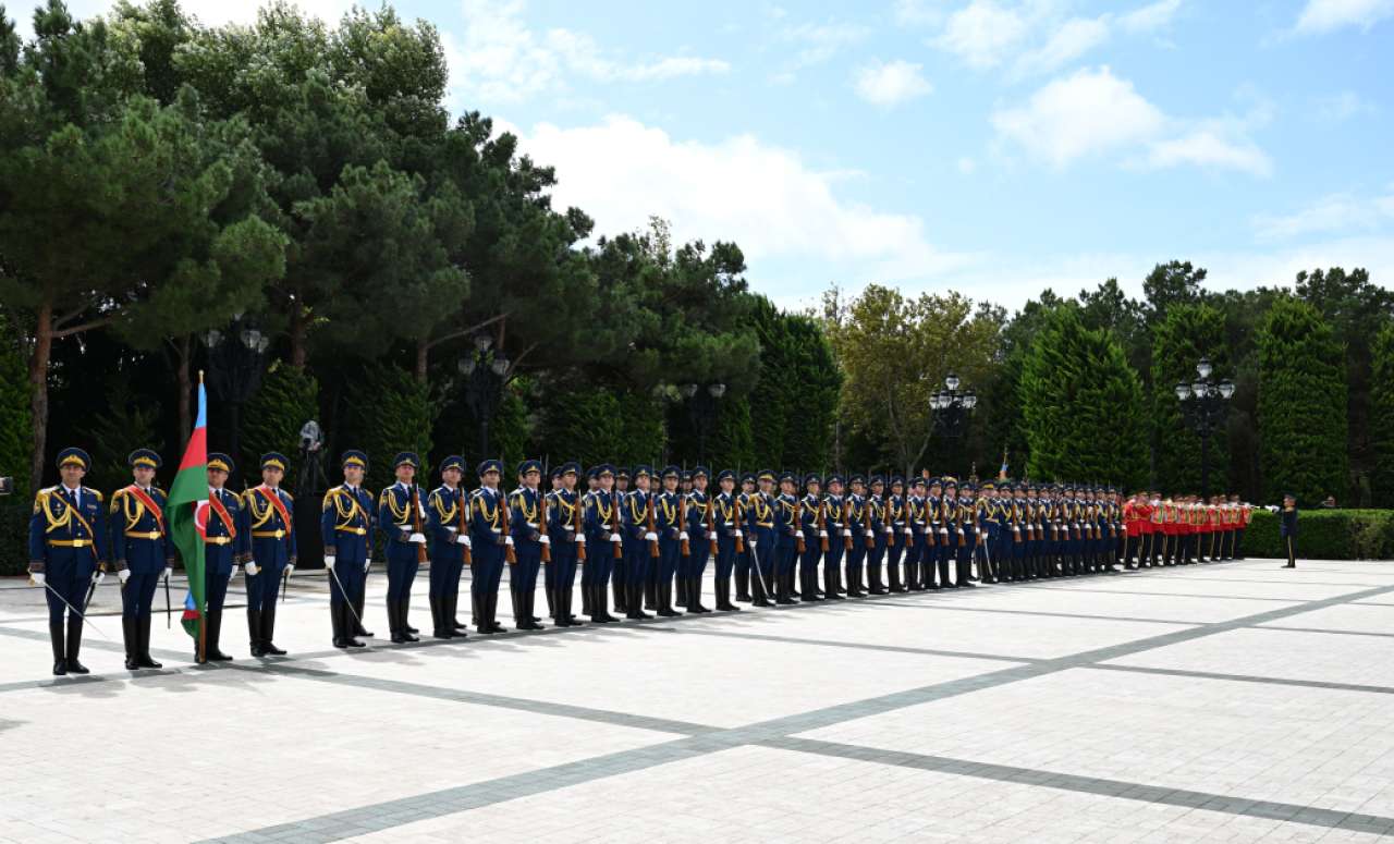 Fəxri qarovul dəstəsi hərbi marşın sədaları altında Azərbaycan Prezidenti İlham Əliyevin və Ruanda Prezidenti Pol Kaqamenin qarşısından keçdi.