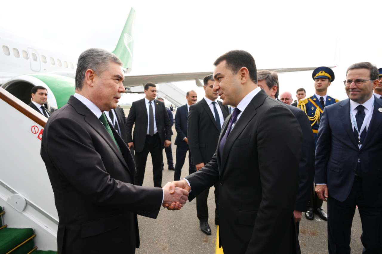 Türkmənistan Xalq Məsləhətinin Sədri Qurbanqulu Berdiməhəmmədovu hava limanında Azərbaycanın mədəniyyət naziri Adil Kərimli və digər rəsmi şəxslər qarşılayıblar.