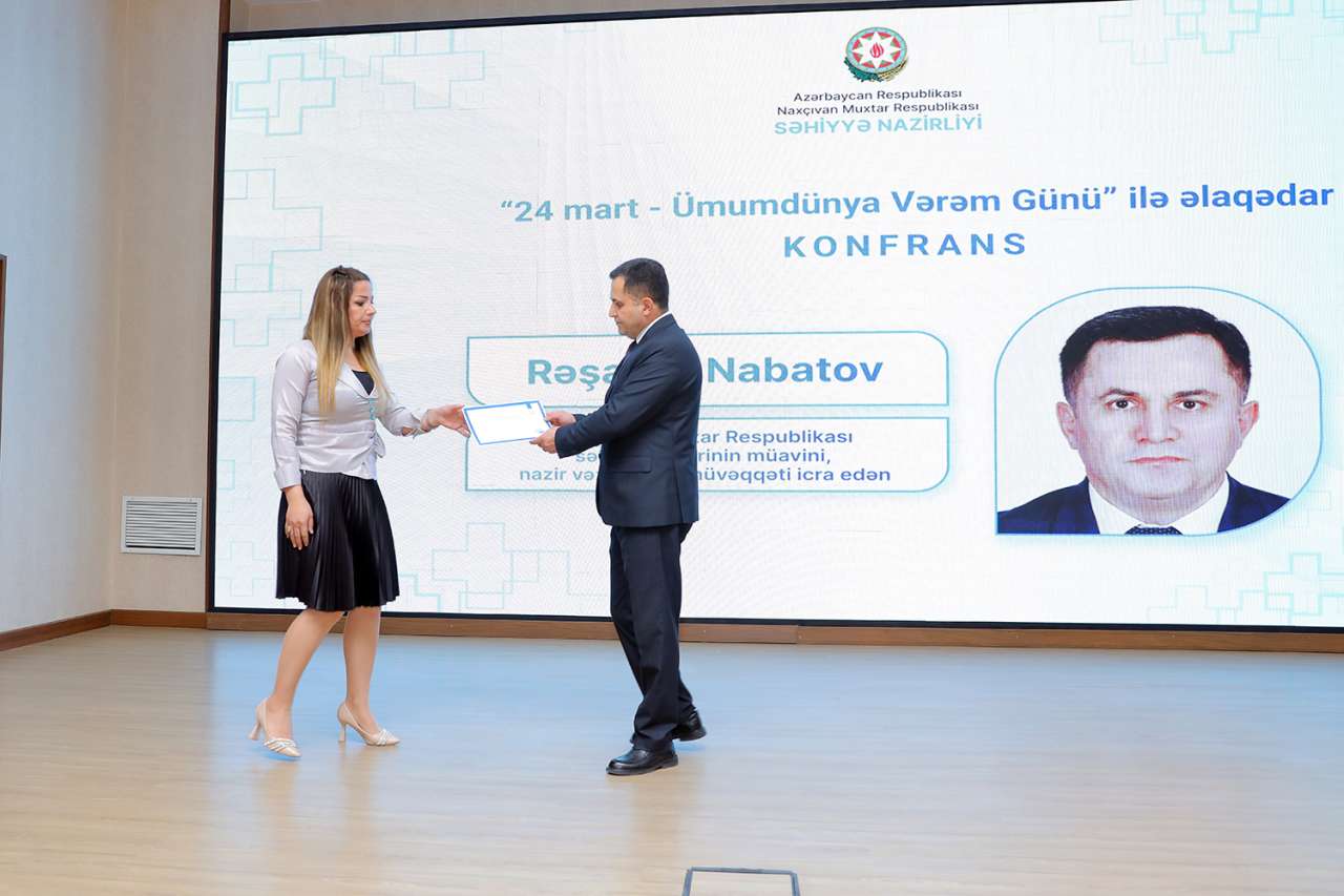 Tədbirin sonunda 24 mart – Ümumdünya Vərəm Günü münasibətilə əhalinin sağlamlığının qorunması sahəsində göstərdikləri yüksək peşəkarlıq, fədakarlıq və xidmətlərinə görə Naxçıvan Muxtar Respublikası Ağciyər Xəstəlikləri Dispanserinin stasionar şöbəsinin müdiri, həkim-ftiziatr İlqar Rzayev və həmin şöbənin növbətçi tibb bacısı Aləm Hüseynova Naxçıvan Muxtar Respublikası Səhiyyə Nazirliyinin təşəkkürnaməsi ilə təltif olunub.