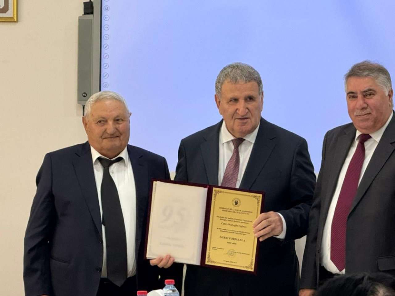 Tədbirin sonunda professor Cəfər Cəfərov Azərbaycan dilçiliyi elminin inkişafındakı xidmətlərinə görə fəxri fərmanla təltif olunub. İştirakçılar görkəmli alimi 95 illik yubileyi münasibətilə təbrik edərək ona möhkəm cansağlığı və yeni elmi uğurlar arzulayıblar.