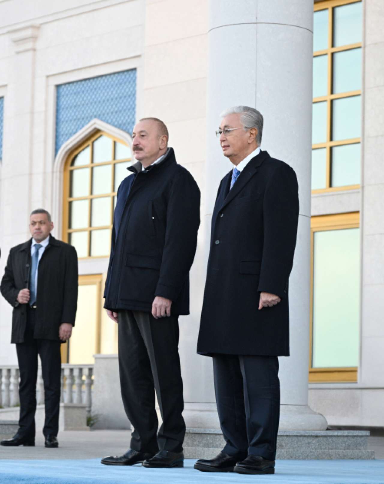Dövlətimizin başçısını Qazaxıstan Respublikasının Prezidenti Kasım-Jomart Tokayev qarşıladı.