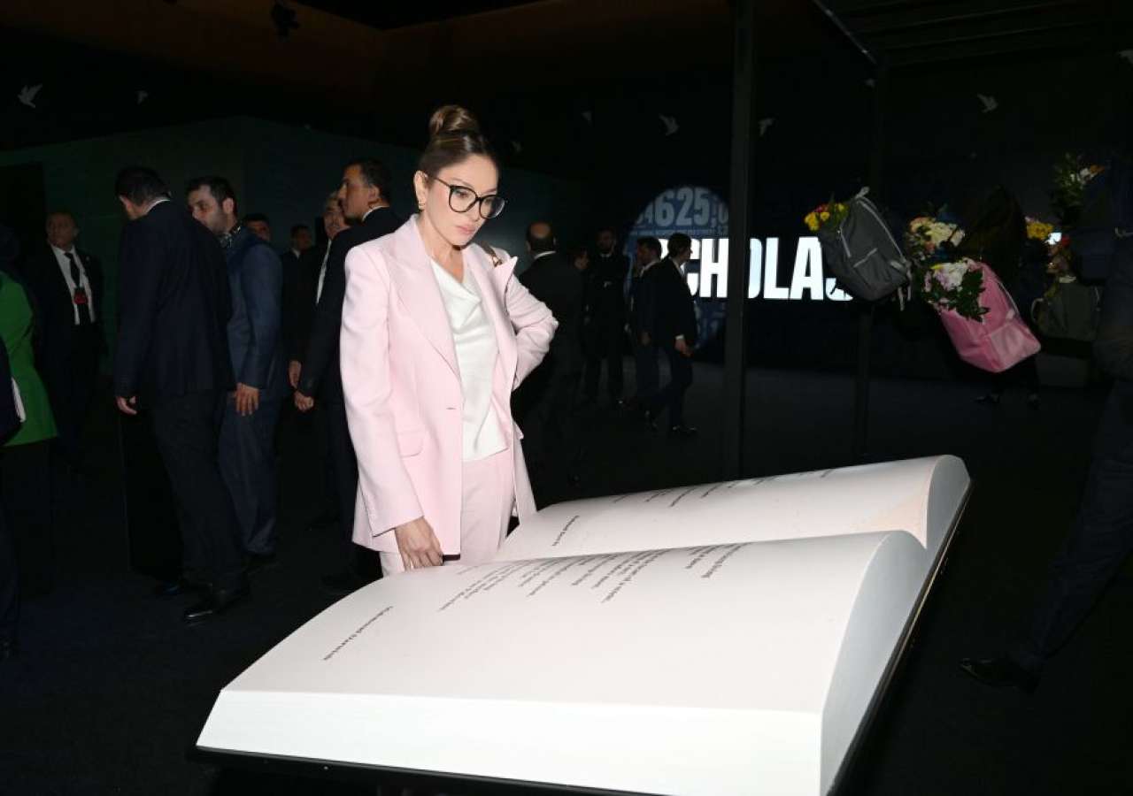 Sonra xatirə şəkili çəkdirilib. Daha sonra tədbir iştirakçıları Fələstində münaqişə nəticəsində təhsil sisteminin məhv edilməsinə həsr olunan sərgiyə baxıblar.