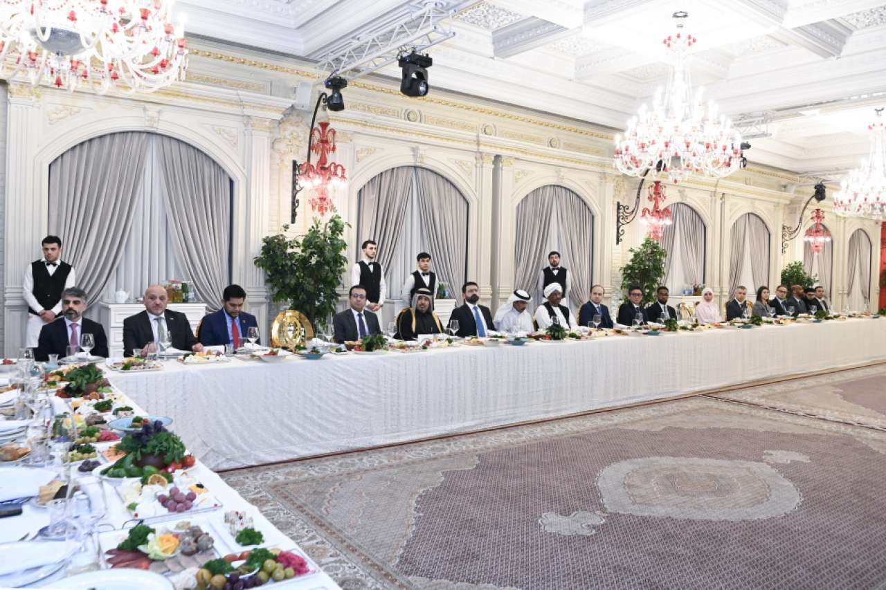 Daha sonra, Azərbaycanda akkreditə olunmuş diplomatik korpusun duayeni, Mərakeş Krallığının ölkəmizdəki səfiri Adil Embarş çıxış edərək, Ramazan ayı münasibətilə təbriklərini diqqətə çatdırıb.