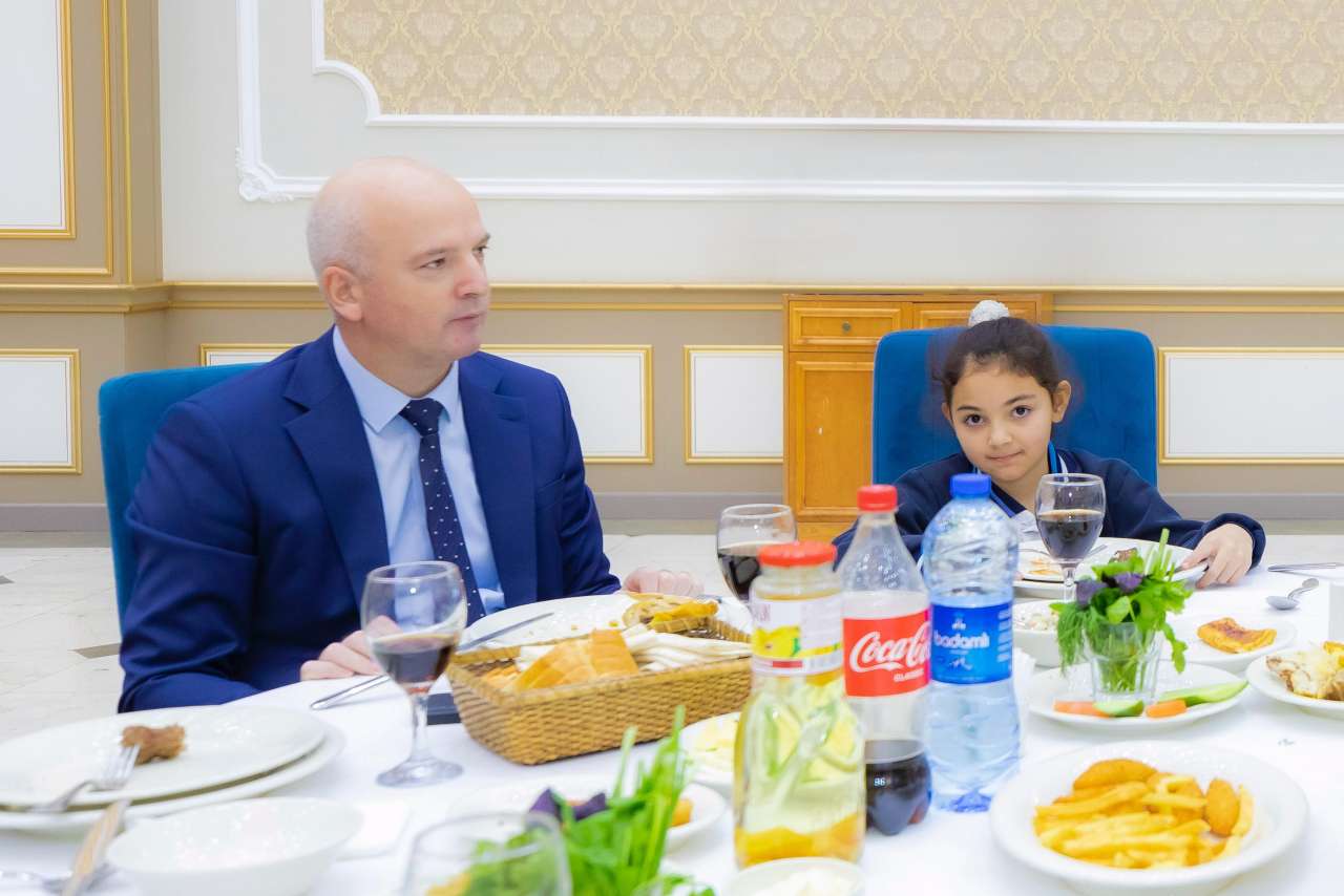 Затем за праздничным столом с учащимися была проведена истинная беседа, а для того, чтобы подарить им радостные моменты, были представлены интересные и яркие программы с участием «Деда Мороза» и других развлекательных персонажей. Во время праздника учащимися школы был представлен танцевальный номер и исполнена песня.