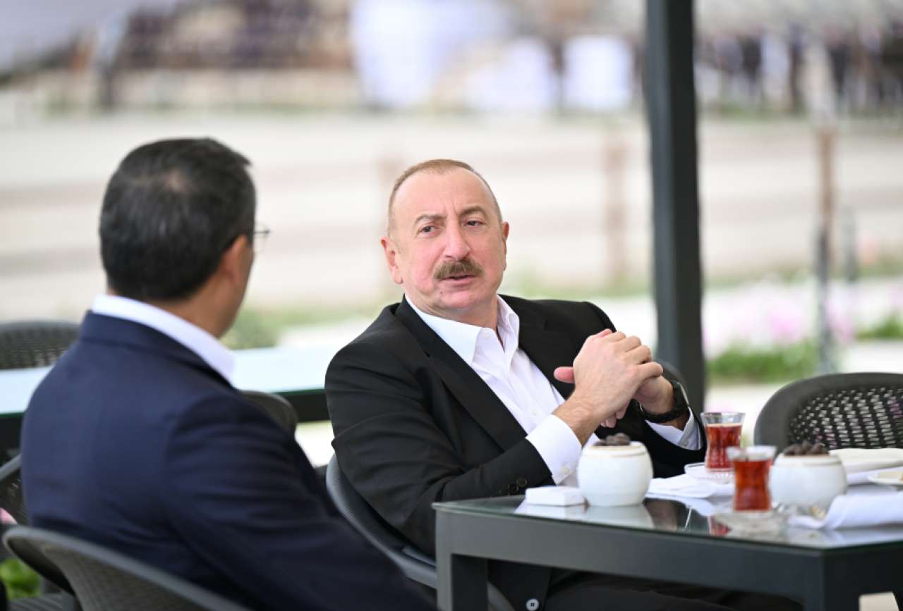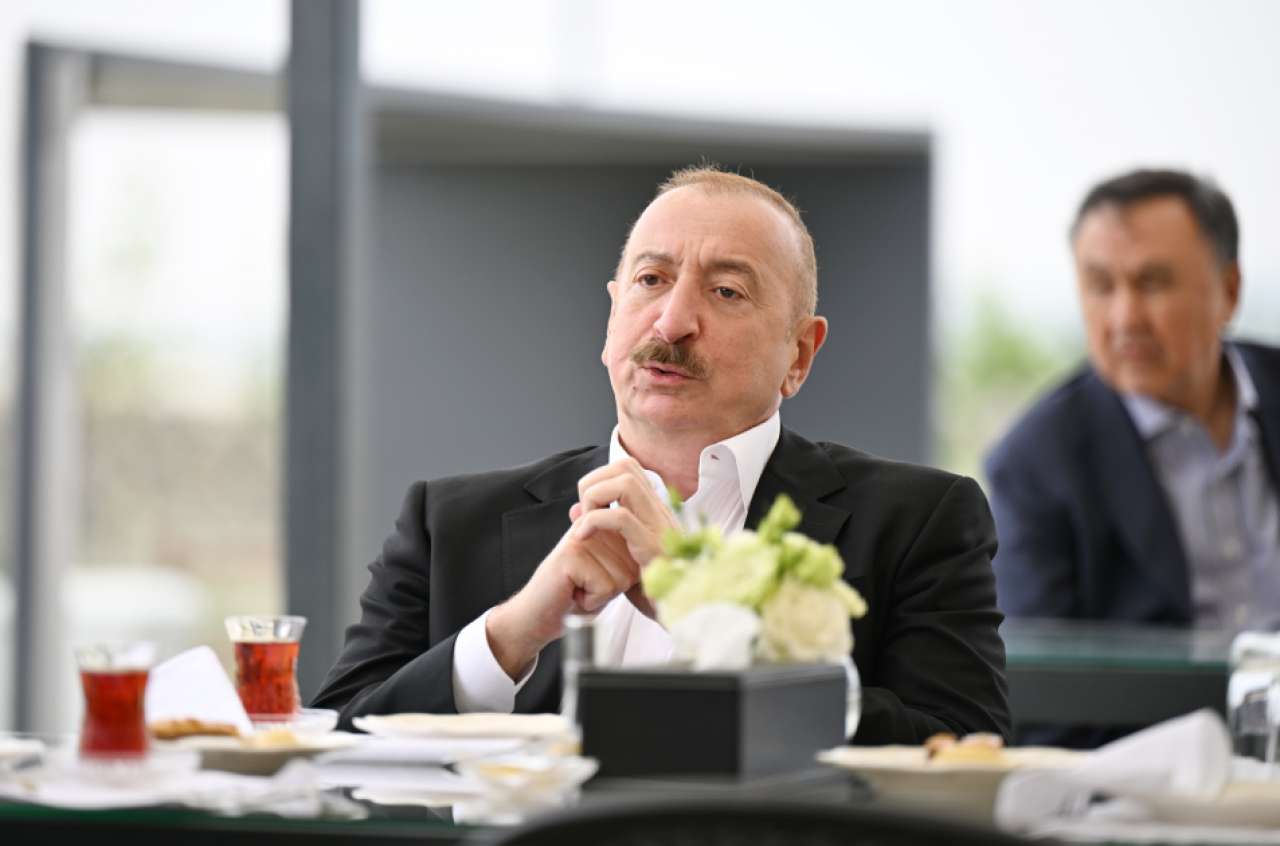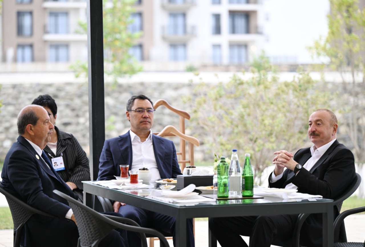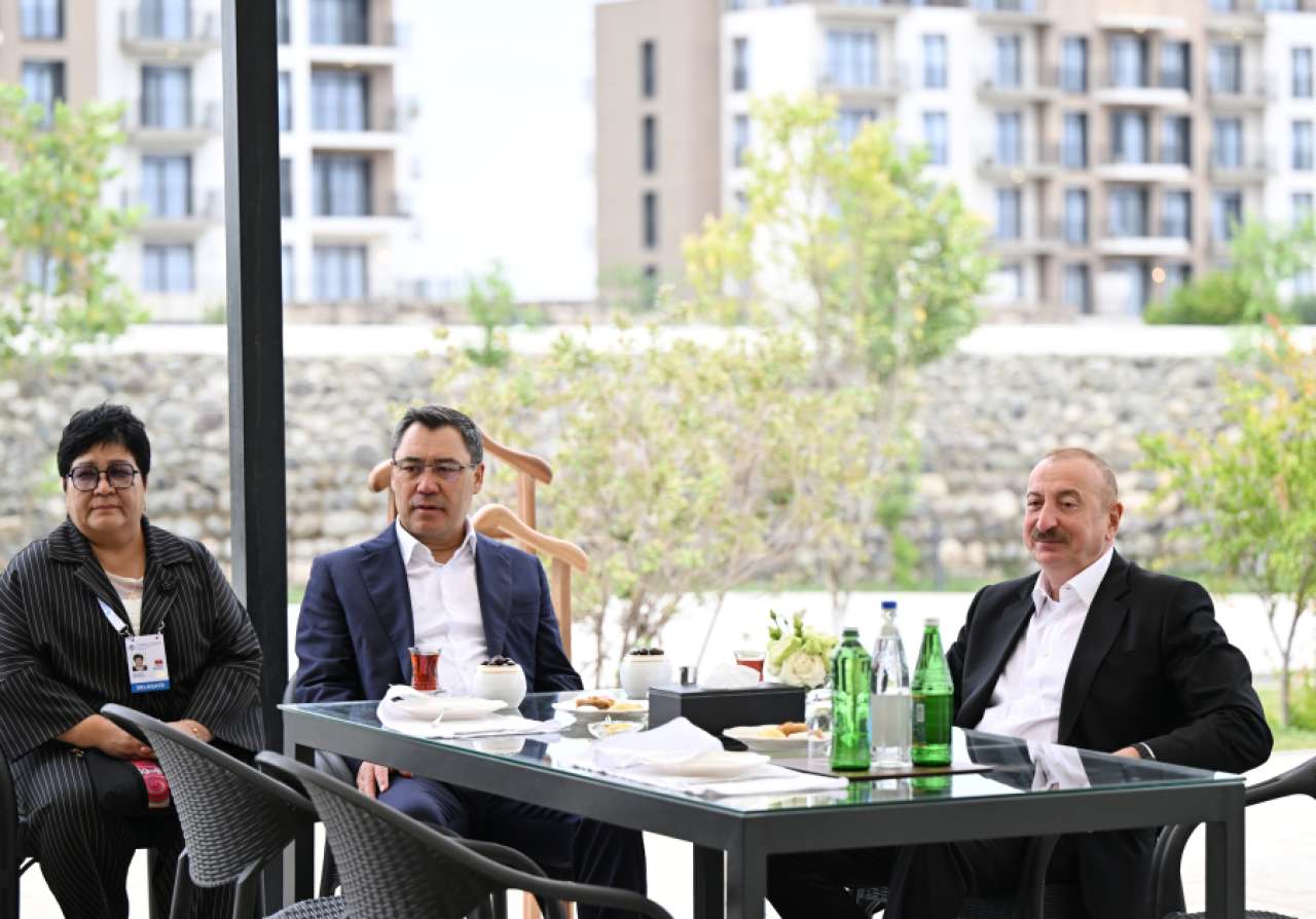"Şərq qapısı" xəbər verir ki, əvvəlcə Azərbaycan Prezidenti və qonaqlar çay süfrəsi arxasında söhbət etdilər.