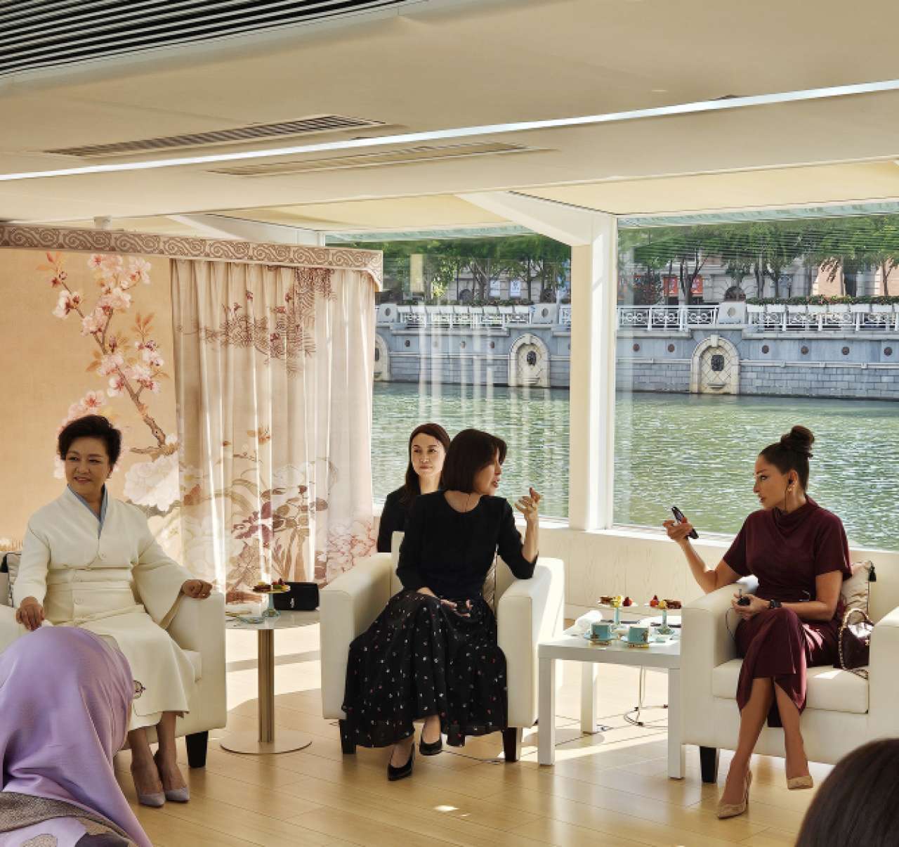 On September 1, First Lady of the Republic of Azerbaijan, Mehriban Aliyeva, and her daughter Arzu Aliyeva joined the First Lady of the People’s Republic of China, Peng Liyuan, and the spouses of heads of state and government attending the Shanghai Cooperation Organization Plus (SCO Plus) meeting for a boat trip on the Haihe River in Tianjin, China.