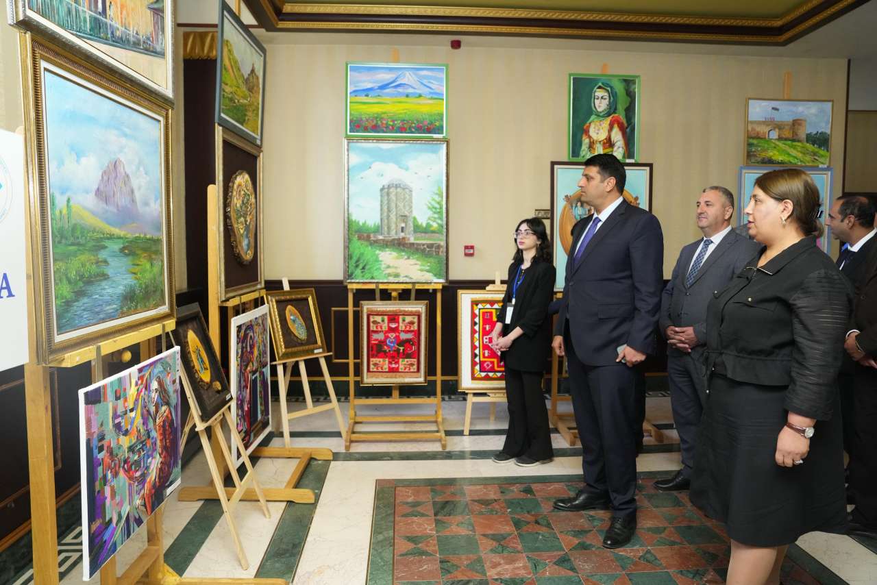 Следует отметить, что на выставке были также представлены изделия ручной работы, подготовленные преподавателями кафедры изобразительного искусства факультета искусств университета, а также студентами специальностей Живопись и Преподавание изобразительного искусства. На выставке были представлены в общей сложности 52 изделия ручной работы, включая 22 картины, выполненные масляными красками, 20 образцов художественной вышивки, 4 изделия из бисера, 3 работы маслом по дереву и 3 витражных произведения. Также на выставке были представлены около 200 изделий ручной работы, подготовленных преподавателями и студентами Технологического центра Нахчыванского государственного университета. Разнообразные виды декоративно-прикладного искусства, такие как ткачество, художественная вышивка, ковроткачество, а также мозаика и изделия из переработанных материалов, привлекли внимание участников выставки.