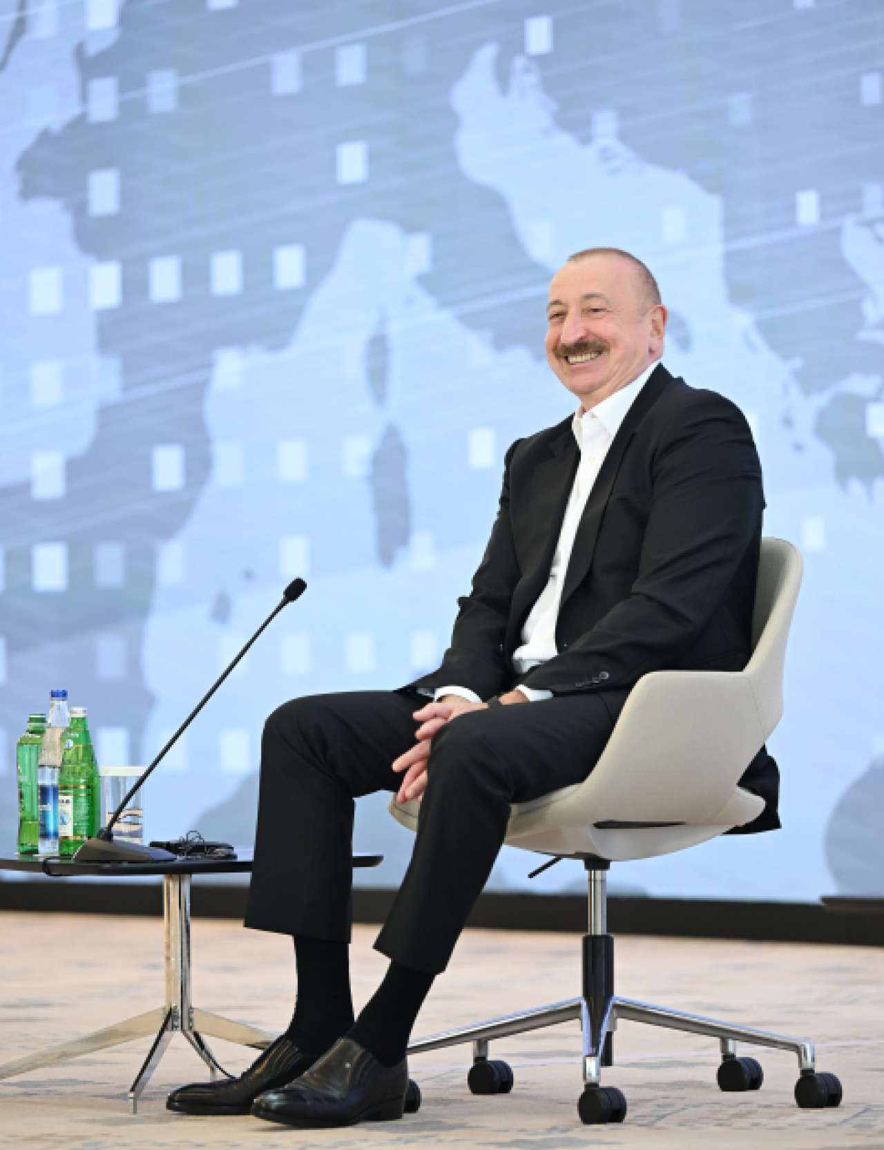 Gela Vasadze: Good afternoon, Mr. President. Thank you very much for another celebration, the third celebration called the Shusha Media Forum. It is a celebration indeed, which leaves a huge aftertaste. A number of questions that I had prepared have already been asked. So I will ask others. I still have questions, quite a few have accumulated over the year. About the meeting in Abu Dhabi. After the meeting in Abu Dhabi, to be honest, I thought about what I kept telling my friend Farhad Mammadov, who is sitting next to me, that when we met, I said, Farhad, we can talk about anything, but let's agree on one thing: the national interests of Azerbaijan and Georgia completely coincide, their strategic interests completely coincide. After the meeting in Abu Dhabi, I thought: how do the national interests of Armenia and Azerbaijan contradict each other so much? How do they contradict each other strategically? To be honest, I did not see these contradictions. Because Armenia's interests are the same as Azerbaijan's – to have a normal neighbor and partner, and to develop this. We have already reached a point when these interests are recognized and when we actually have a picture in which external forces, I don't mean countries, but a specific group of people with interests, simply prevent our countries and people here in the region from living normally. Thank you.