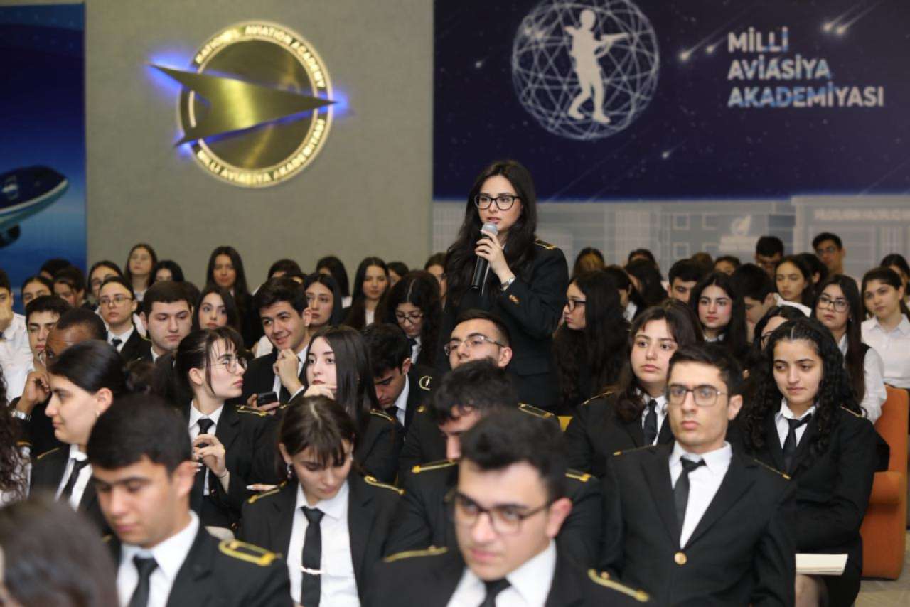 Daha sonra nümayəndə heyəti ilə Milli Aviasiya Akademiyasının tələbələri arasında görüş təşkil edilib.