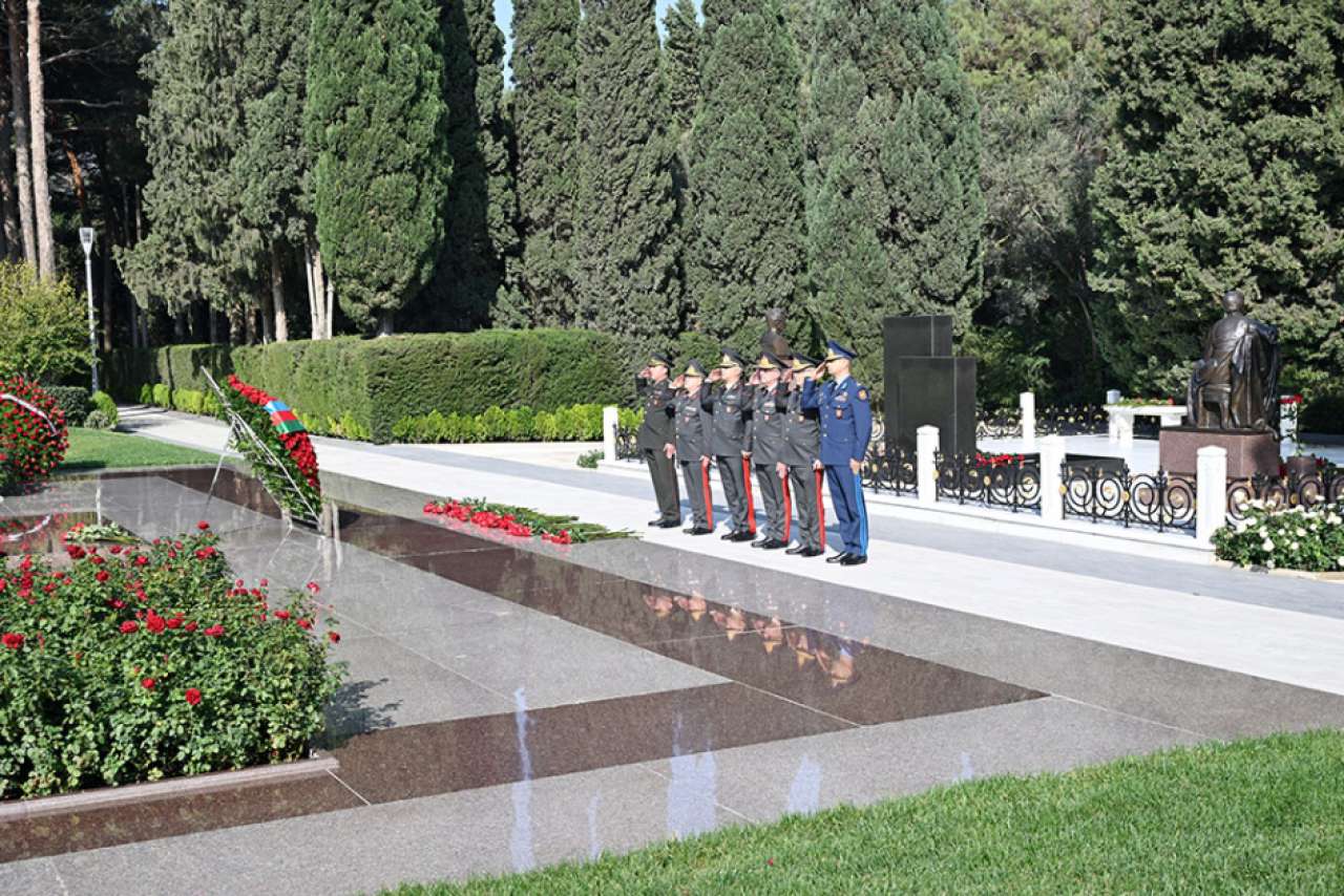 Sonra Şəhidlər xiyabanına gələn hərbi qulluqçular Vətən uğrunda canlarını fəda etmiş şəhidlərimizin məzarlarına və “Əbədi məşəl” abidəsinin önünə tər gül dəstələri düzüblər.