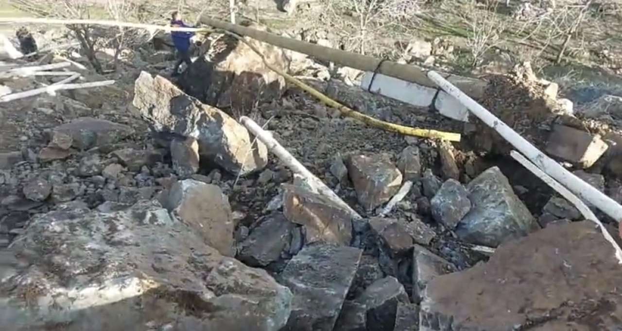Hazırda qaya parçaları dağıdılaraq ərazidən yığışdırılır.